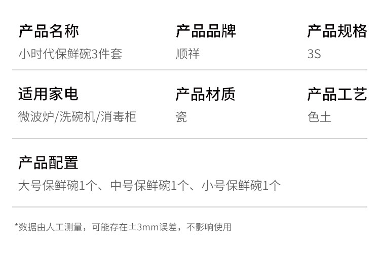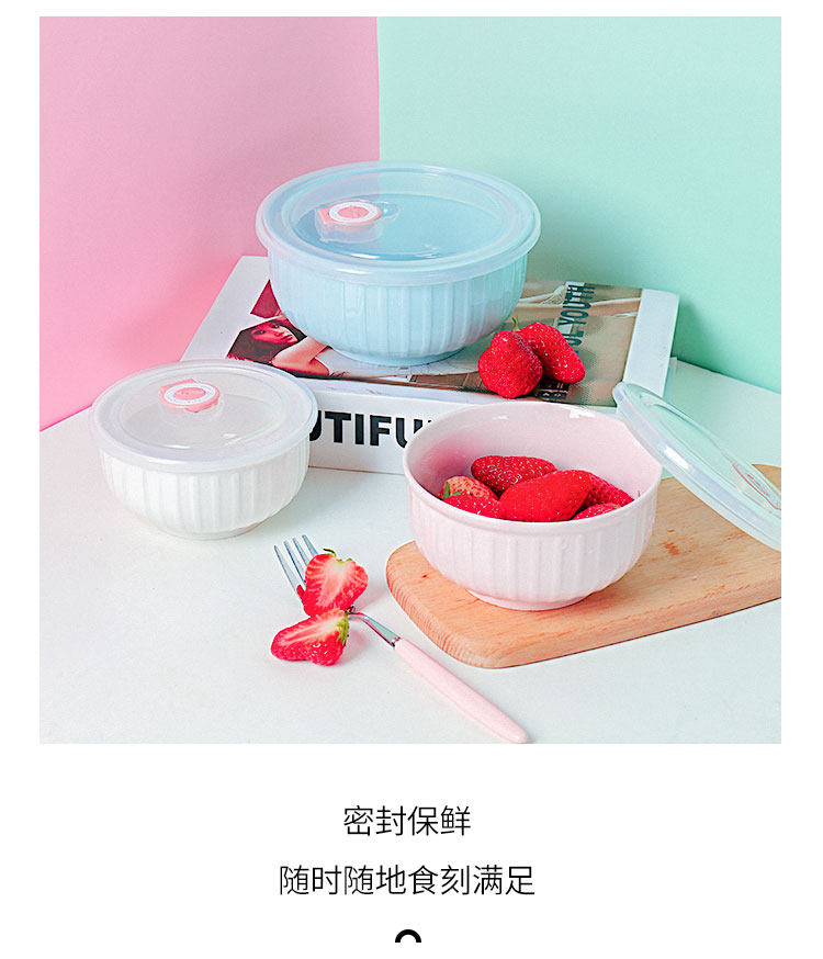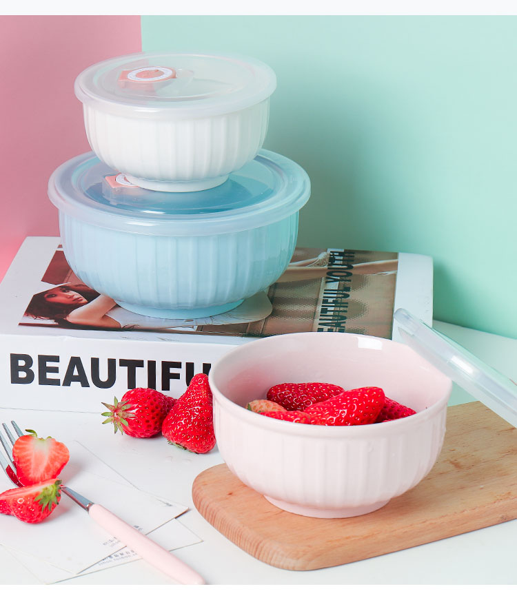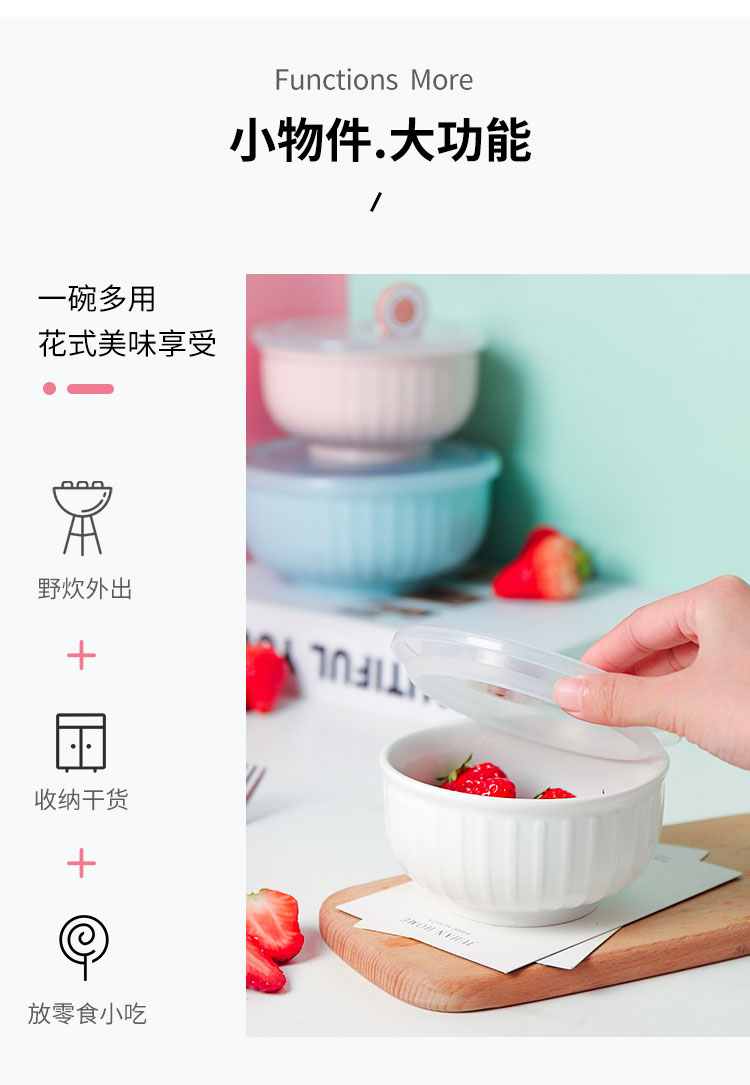 【顺祥】顺祥陶瓷保鲜碗3件套带盖泡面碗,优质材料,抗菌瓷釉面,精致浮雕,艺术陶瓷,经久耐用,可在各种场景使用。