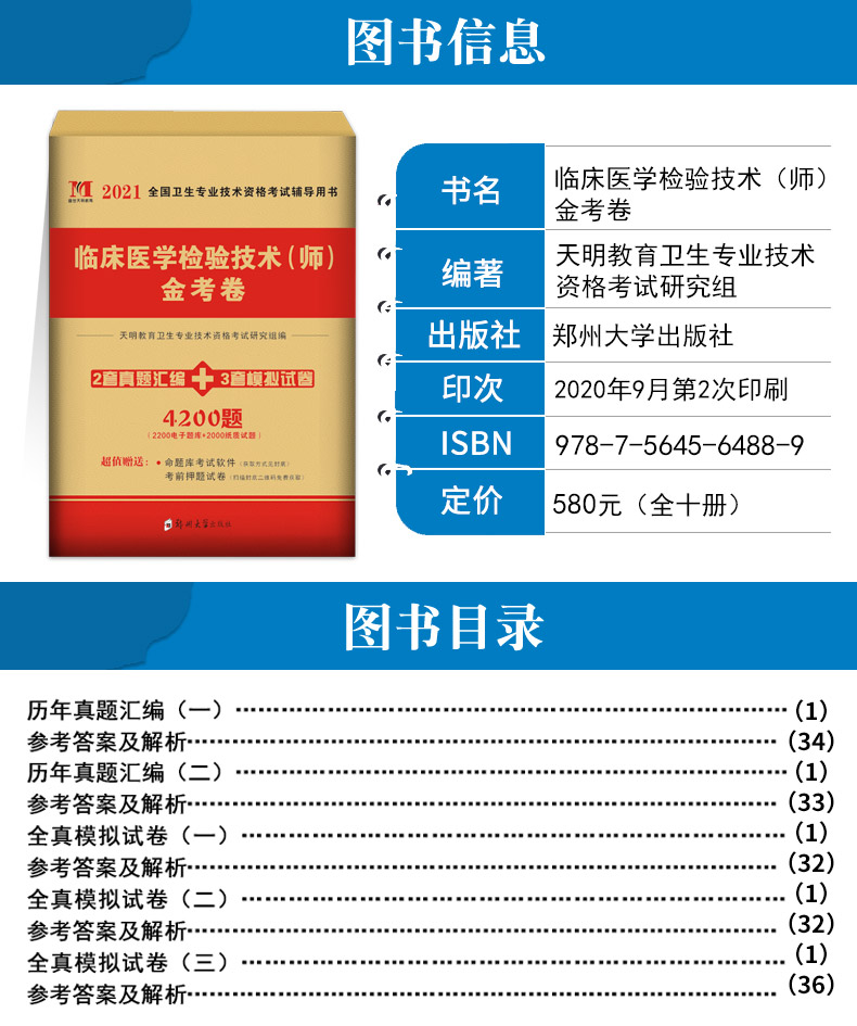 2020年临床医学检验技术师金考卷历年真题模拟卷全国卫生专业技术资格考试用书可搭军医版人卫版指导教材2019
