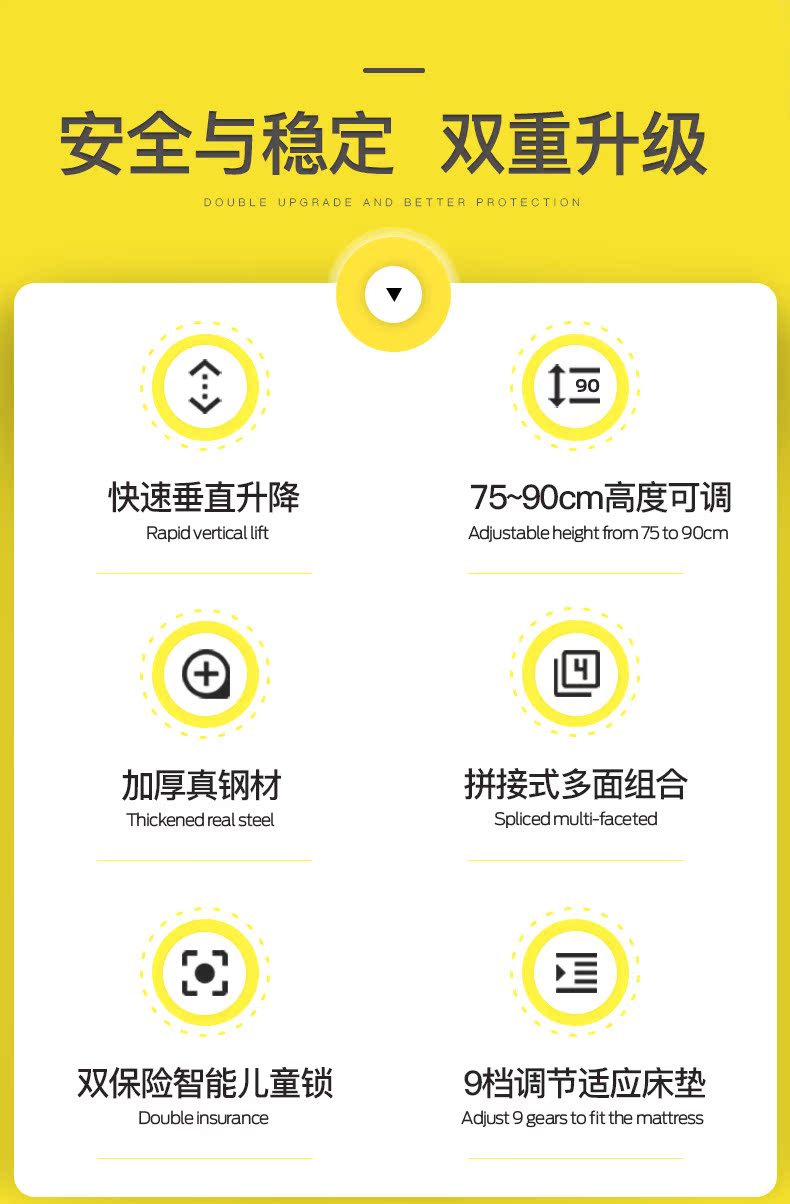 【英国品牌】一人带娃,无需看管,加厚真钢材骨架不摇晃,环保材质无异味!超强9档防夹床,垂直升降,全面【屏】+可视网布360度无死角保护宝宝,再也不用担心宝宝睡觉不老实