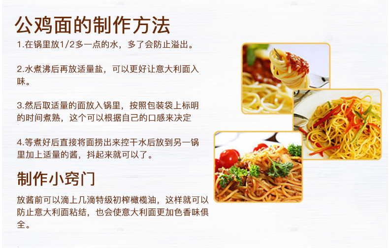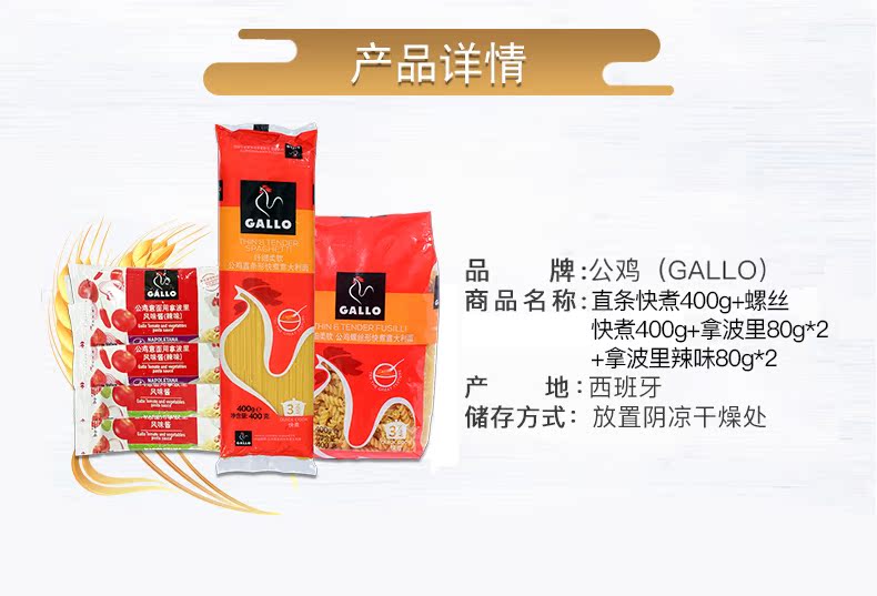 公鸡快煮组合意面礼包,内含直条+螺丝+拿波里酱*2+拿波里辣味酱*2,西班牙进口,优选硬质粗粒杜兰小麦粉,好吃、易做、做法多,可搭配多种公鸡意面酱~