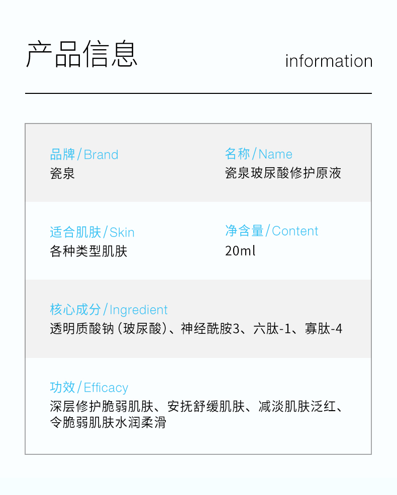 【瓷泉玻尿酸精华液】补水保湿,渗透肌底,补充肌肤养分,锁水保湿,增加皮肤弹性,改善黯沉,祛纹褪皱,收缩毛孔,淡化印痕,一滴渗透,滋润呵护,清爽易吸收,让皮肤更细嫩!【赠运费险】