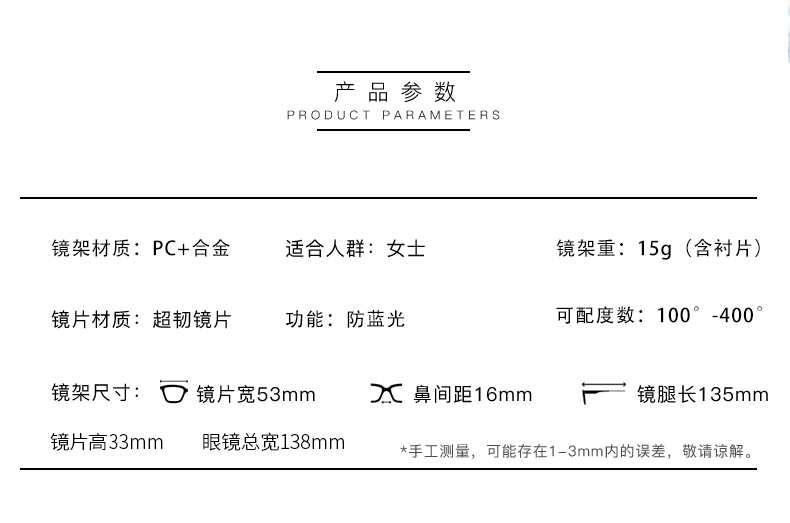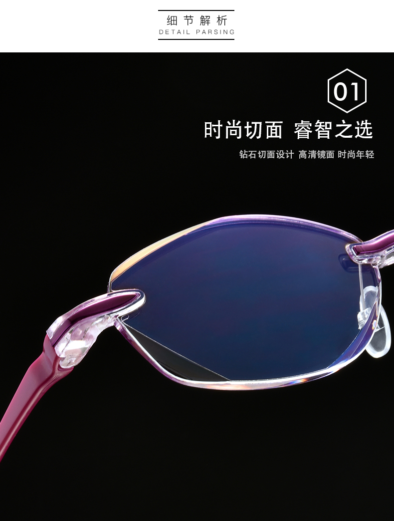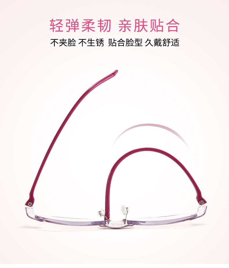 轻盈耐用立体鼻托,不夹脸,不压鼻,防下滑,亲肤感。关爱老人,从眼前开始。符合国人脸型的框型变曲度。远距离视野无忧,中距离阅读无碍,近距离细致入微。