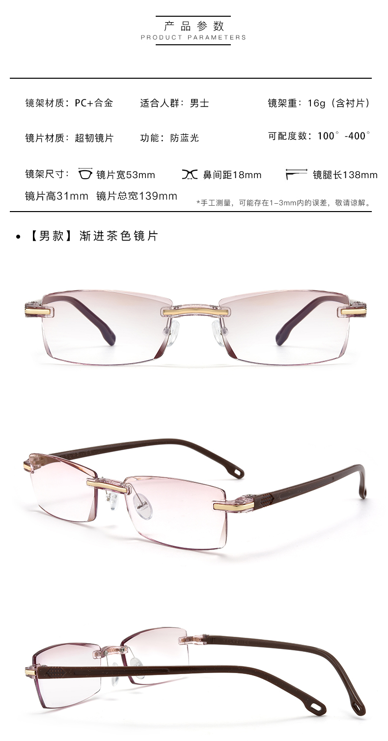 西岚品牌无框老花镜男女高清舒适优雅时尚轻盈防蓝光老光老花眼镜