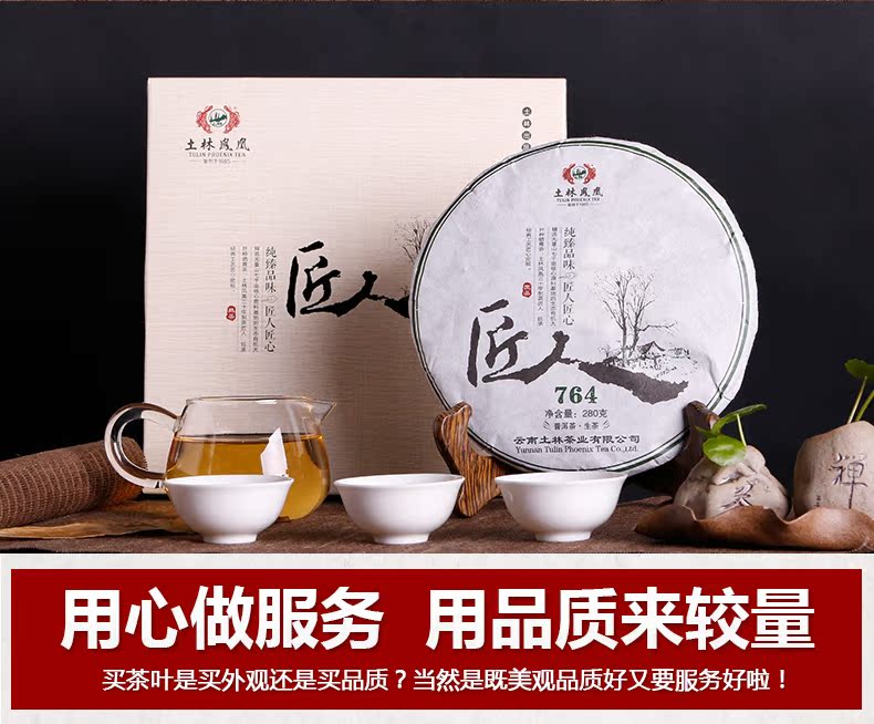 土林凤凰匠人高品质生熟刮油普洱茶礼盒装云南七子饼普洱茶叶茶饼
