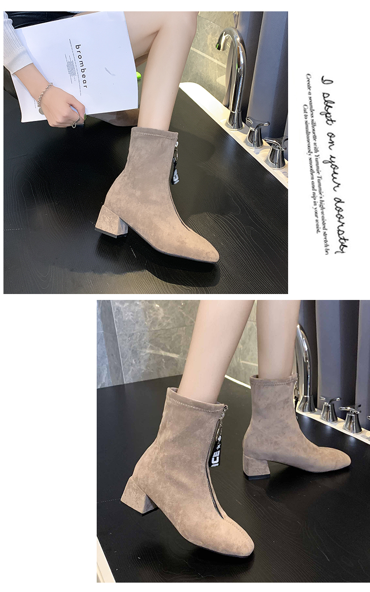 短靴女春秋季单靴时尚新款ins潮网红中跟马丁靴子女2019秋款粗跟