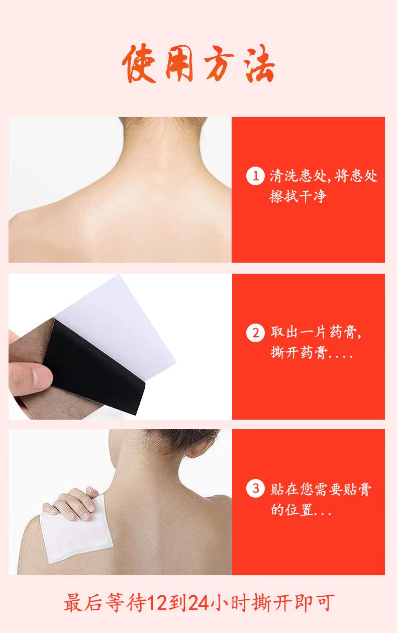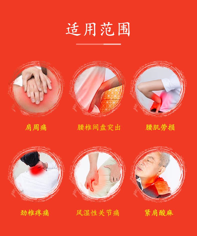 主要针对症状:肩周炎,腰椎间盘突出,颈椎疼痛,骨质增生,关节扭伤,风湿性关节炎,颈肩酸痛,不过敏不刺激,家中常备,一贴轻松。