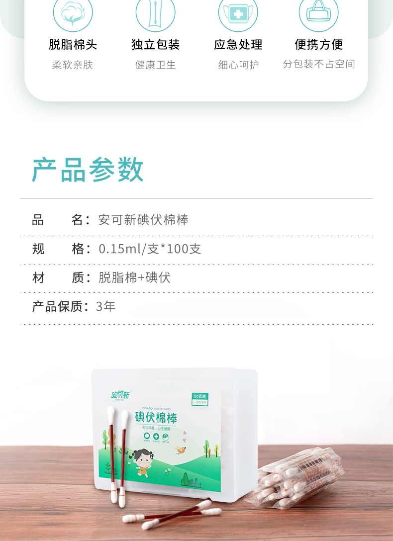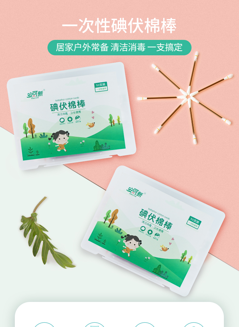碘伏棉棒新生婴儿肚脐酒精消毒液一次性家用棉签宝宝专用便携式