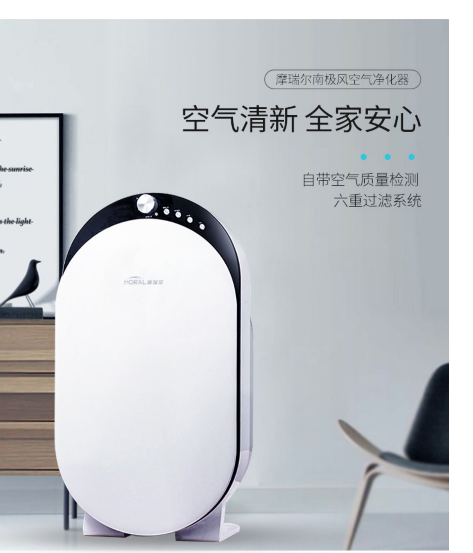 【moral旗舰店】6重超滤净化,自带空气质量检测功能,层层过滤,高效祛除甲醛、雾霾pm2.5、二手烟等有害物质,雾霾高发季家中必备,随时随地关爱家人呼吸健康!【赠运费险】