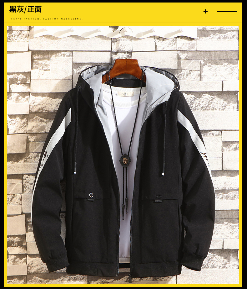 2019秋冬季加绒夹克外套新款休闲男士茄克连帽修身韩版帅气潮流
