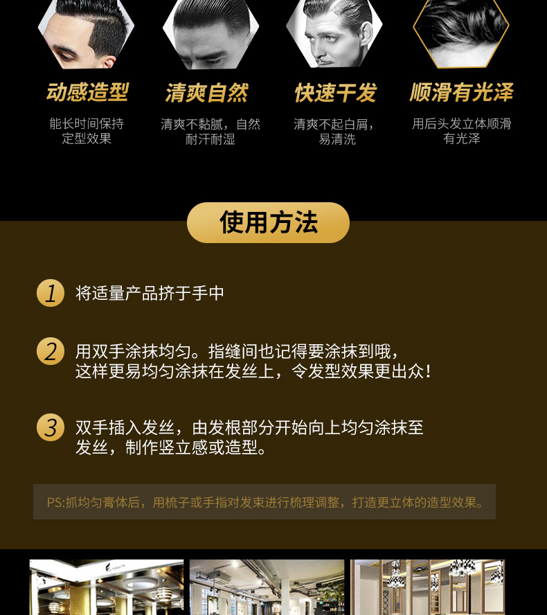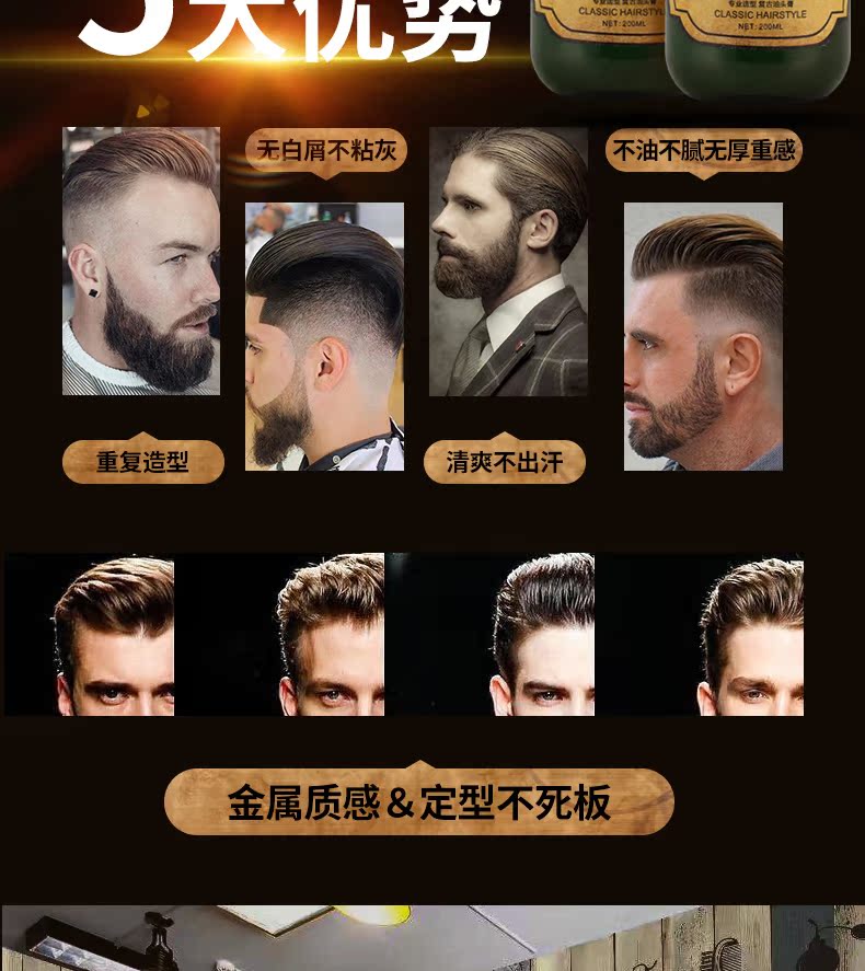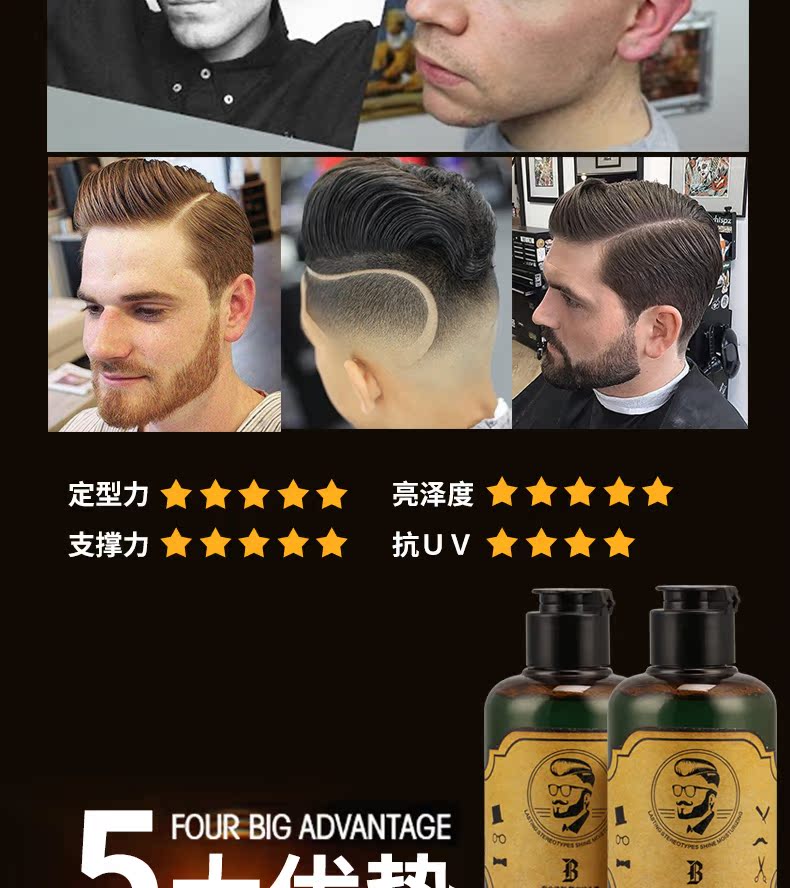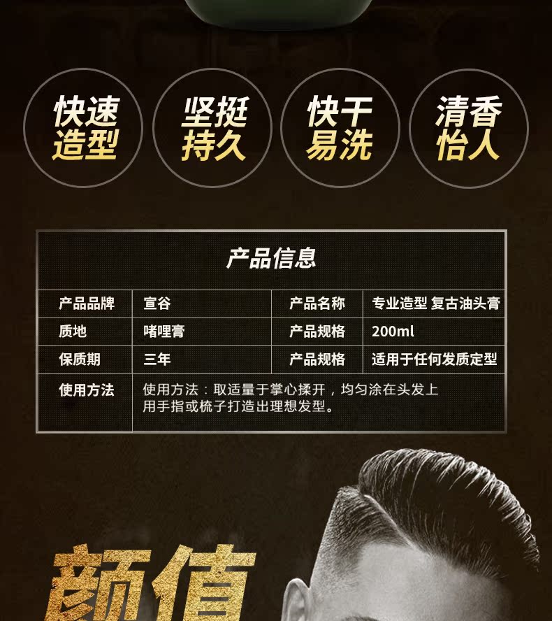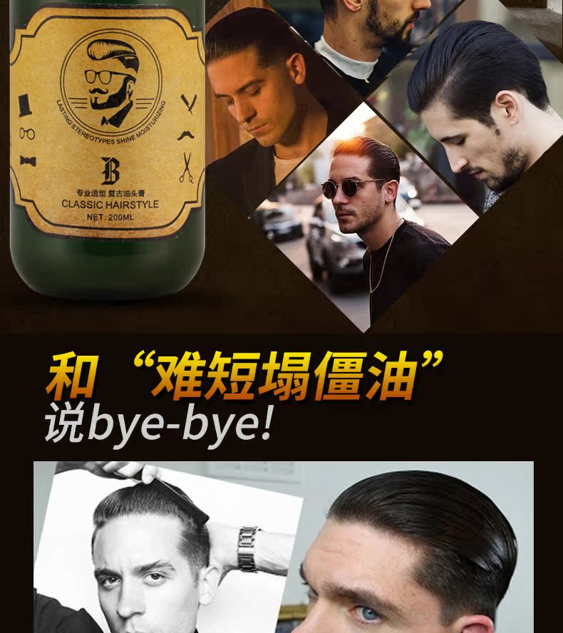 宣谷 复古啫喱膏油头膏男士大背头保湿啫喱水定型发油蓬松