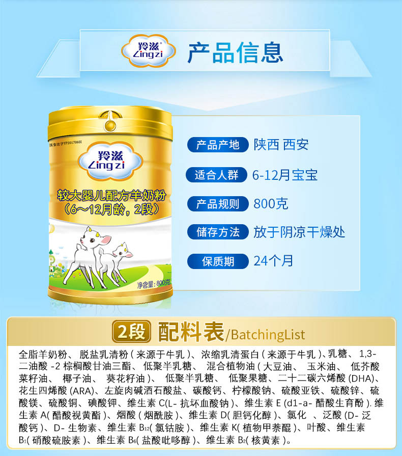 【买3送1同品】羚滋,羊奶粉2段opo,较大婴儿配方二段羊乳粉800克罐,不要礼品咨询客服更优惠。