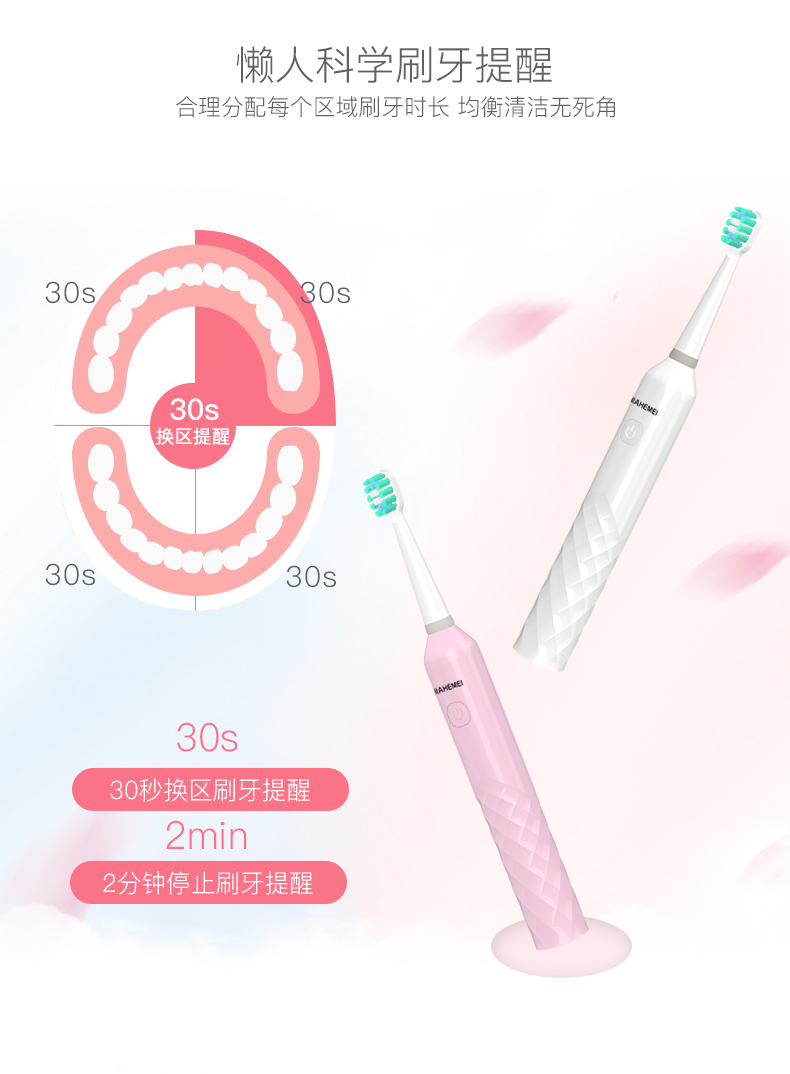 【正品保证】多款可选,佳禾美电动牙刷成人,基础电池款白色共2枚刷头,软毛超声波自动牙刷,专为亚洲口腔打造,细软刷丝,灵活清洁口腔盲区。6档变频震动,健康护齿安全放心有保障!【赠送运费险】
