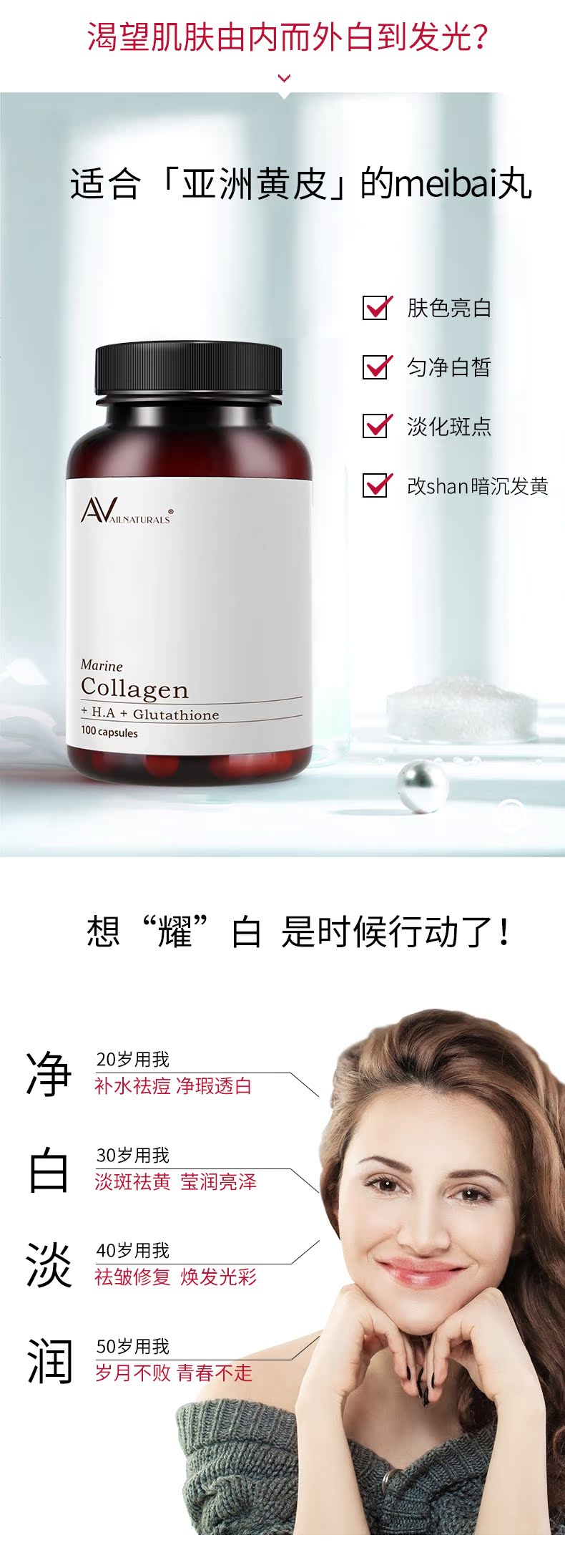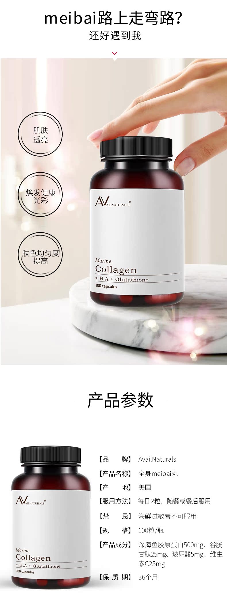 美国Avail美白丸胶原蛋白美白美颜美容养颜胶囊谷胱甘肽水光片