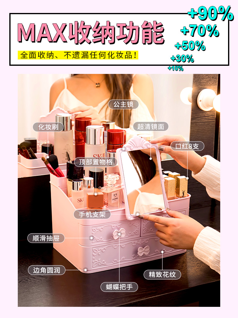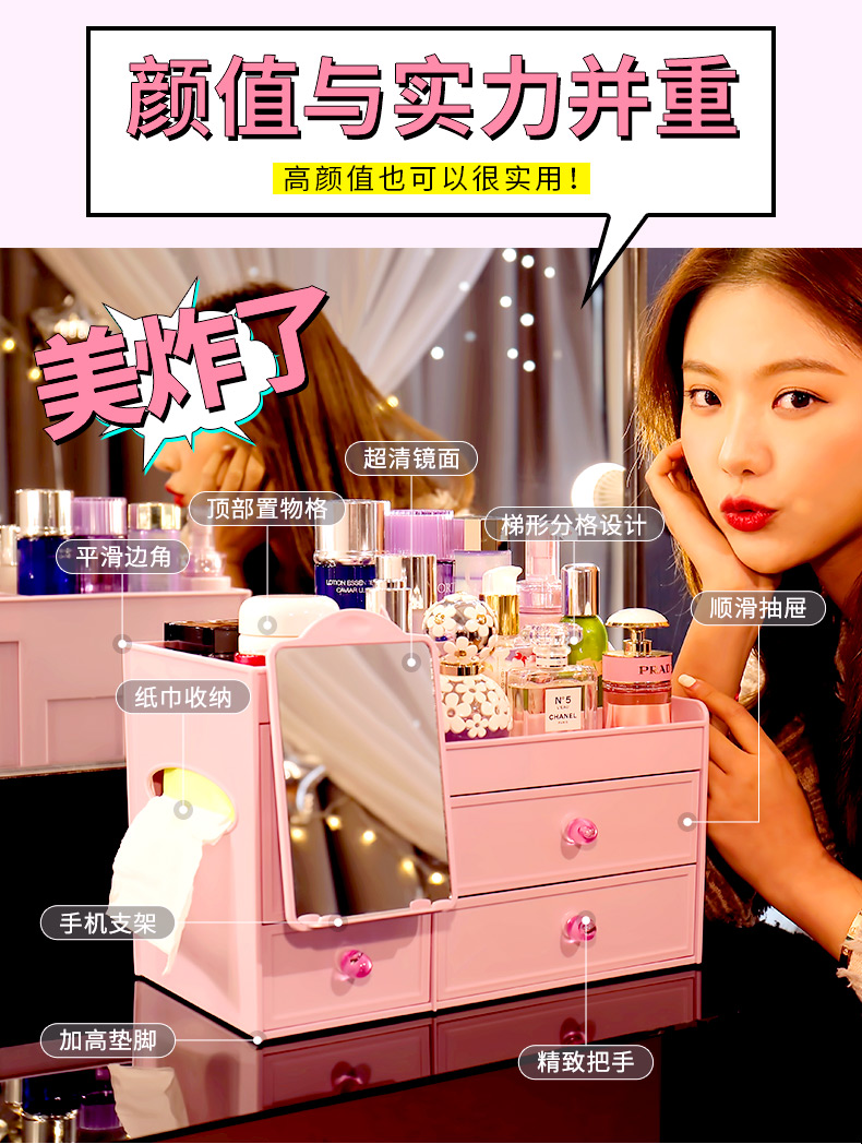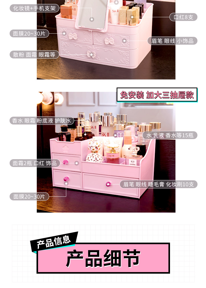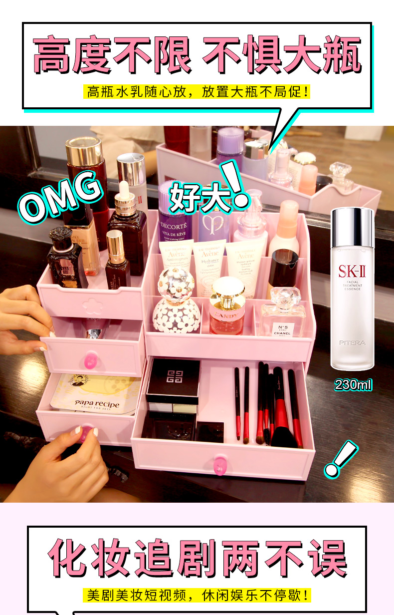抽屉式化妆品收纳盒家用大容量网红整理护肤桌面梳妆台塑料置物架