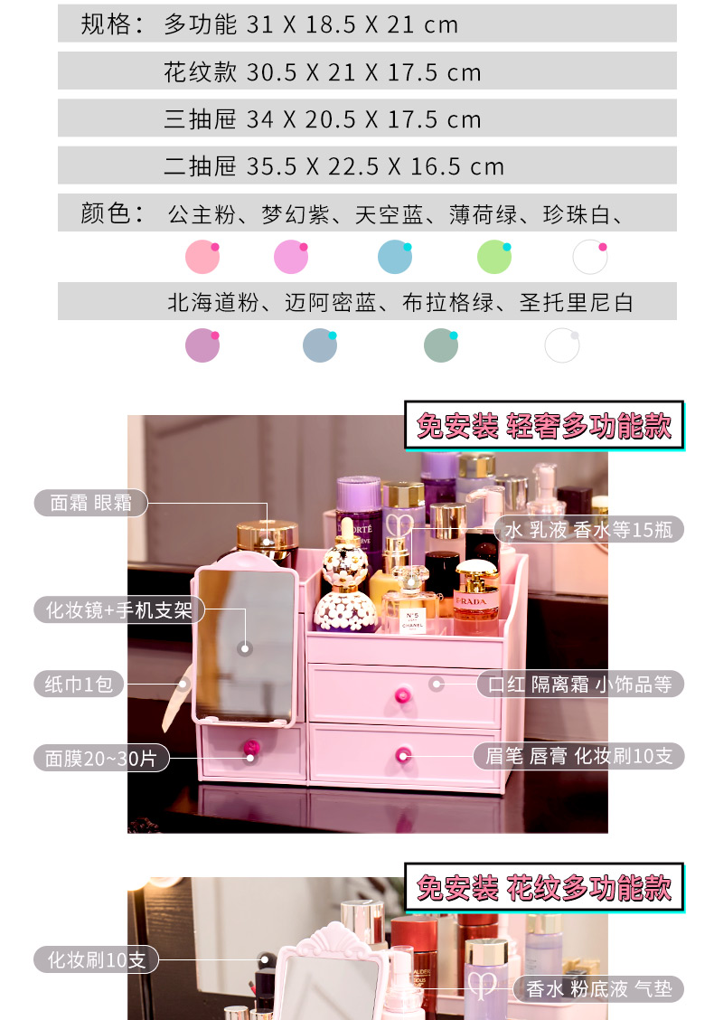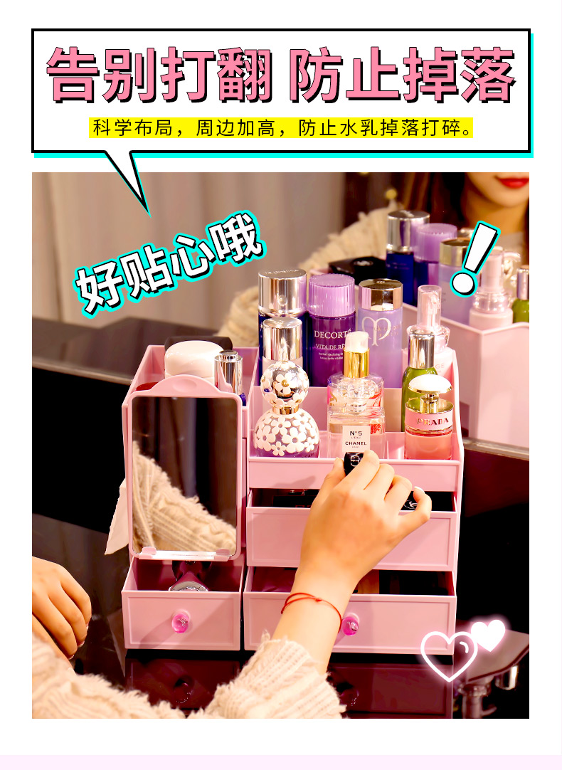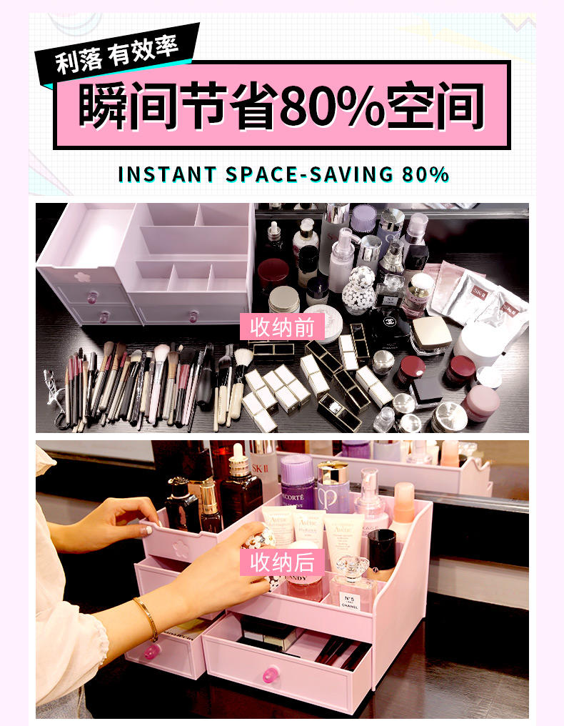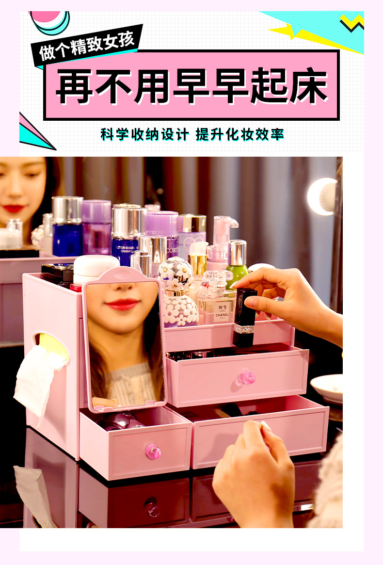抽屉式化妆品收纳盒家用大容量网红整理护肤桌面梳妆台塑料置物架