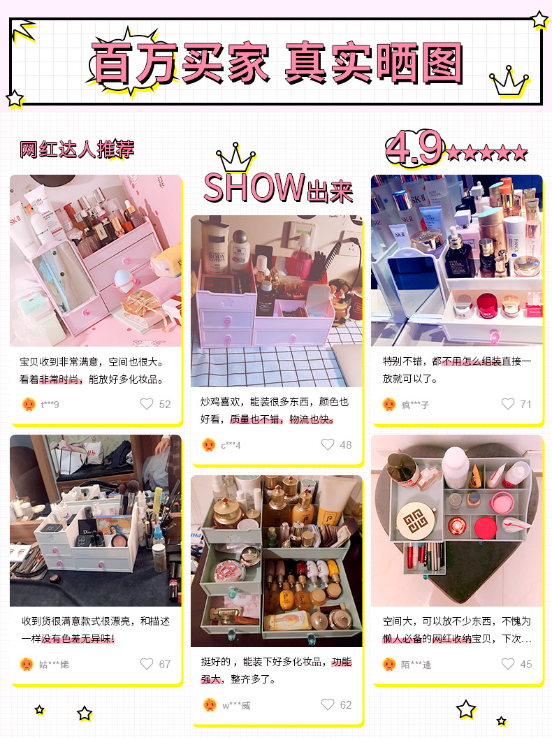 网红爆款,各大主播推荐~!抽屉式设计,防水防尘,分体设计,层层叠加省空间!分类收纳~整洁叠放,有效提升空间使用效率!再也不用担心桌面乱糟糟!【赠运费险】