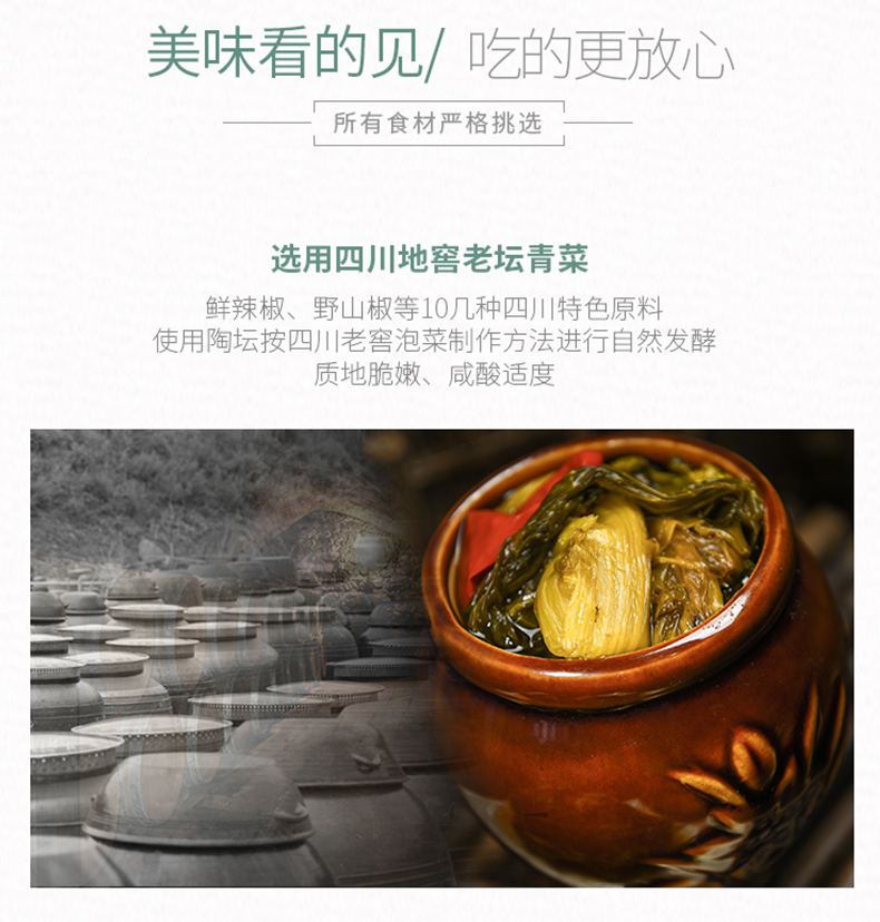【第2件5.9!超值300g装!破损包退!】选用四川地窖老坛酸菜,质地脆嫩,咸酸适度,传统工艺制作,香味醇厚,正宗酸爽,地道风味,开胃十足,饭店里的美味金汤酸菜鱼你也能轻松制作!~