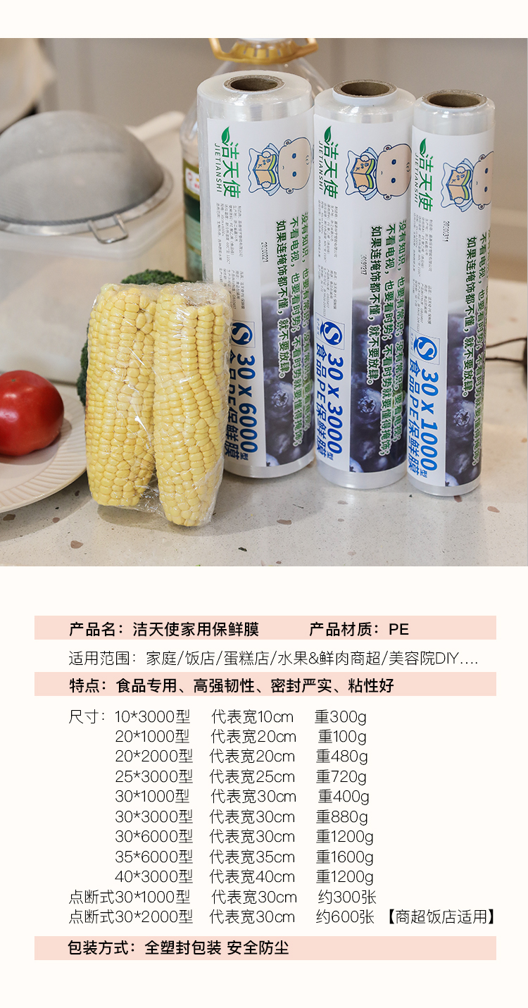 【洁天使】家用大卷保鲜膜850g,简单大方,卫生健康,保鲜、防污、防尘,家庭生活小帮手。