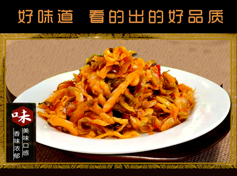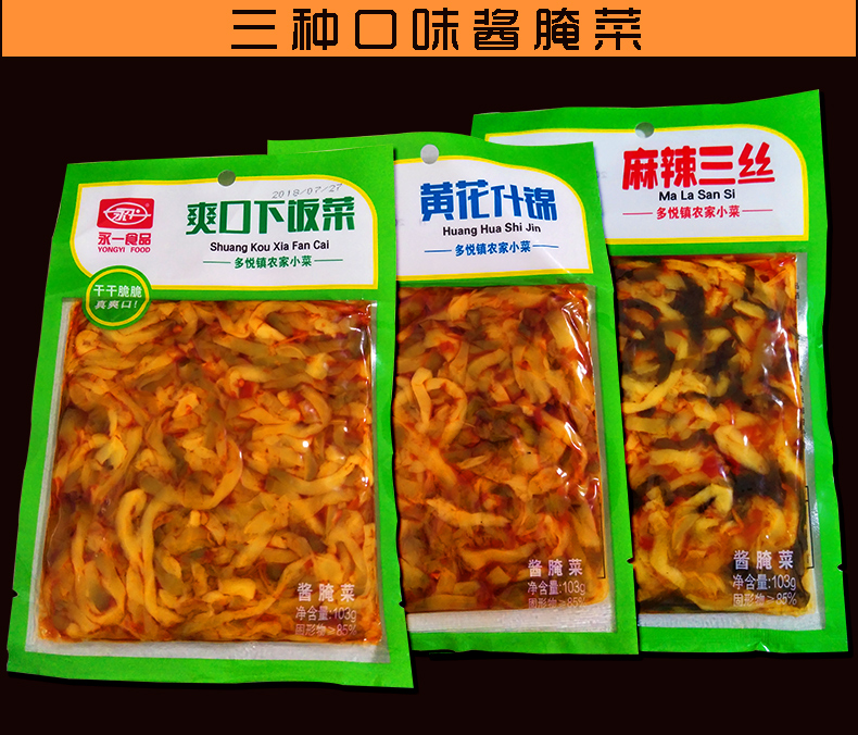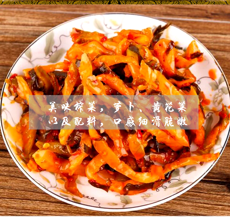 好味道,看得出的好品质!精选榨菜、萝卜、黄花菜、海带以及新鲜配料,口感细滑脆嫩,鲜,脆,嫩,地道美味,丝丝入味,鲜脆爽口,开胃下饭,多种搭配,老人小孩皆可吃