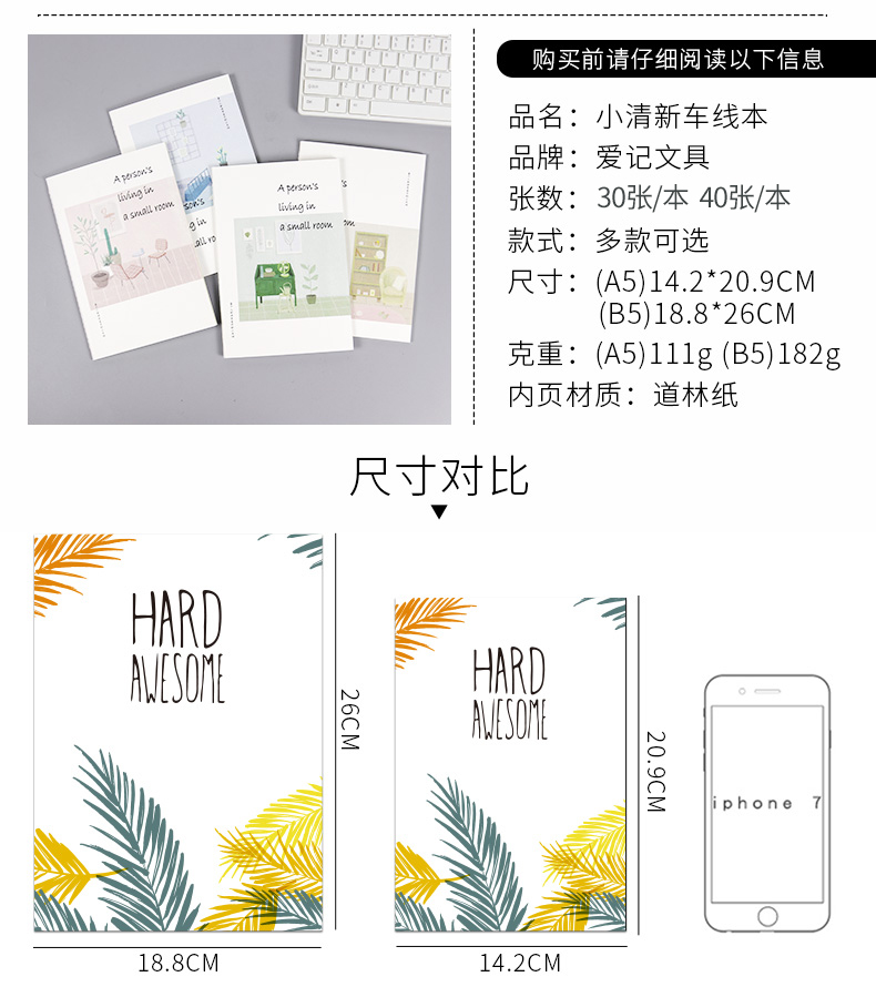 爱记笔记本子记事本加厚韩国小清新女简约b5a5车线本大号软面抄大学生创意小本子日记本学生练习本批发笔记本