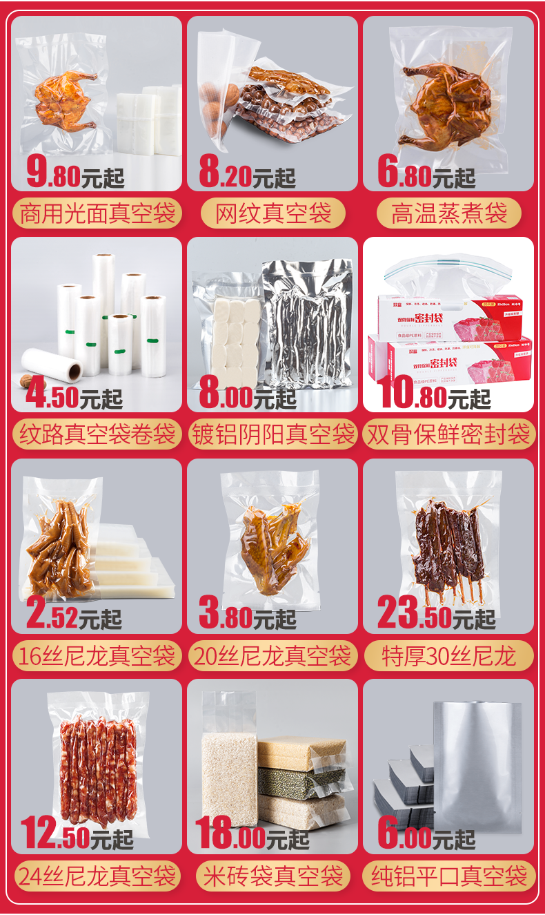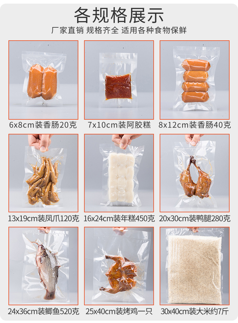 透明食品真空袋包装压缩热封口塑封商用抽气保鲜袋子密封塑料定制