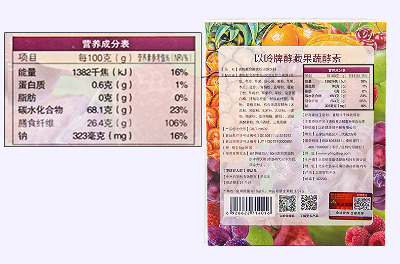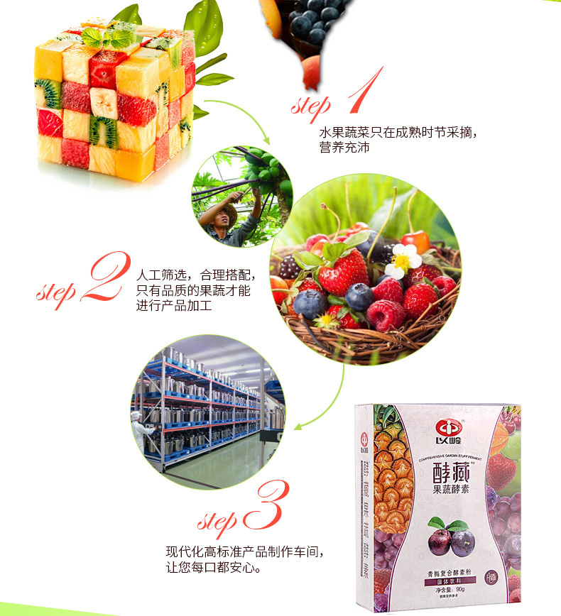 以岭官方青梅复合酵素粉水果蔬孝素益生菌活性酶酶6g*15袋