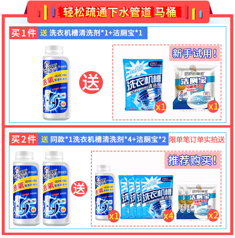洁宜佳强力管道疏通剂通下水道神器厨房厕所通马桶堵塞溶解除臭剂