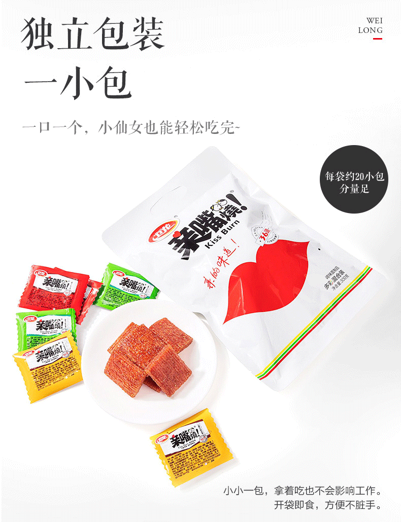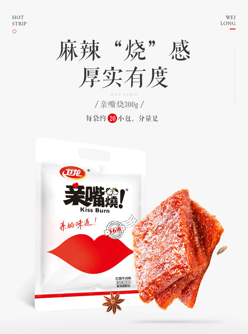 卫龙亲嘴烧300g辣条亲嘴片豆干大刀肉麻辣香辣风味零食小吃
