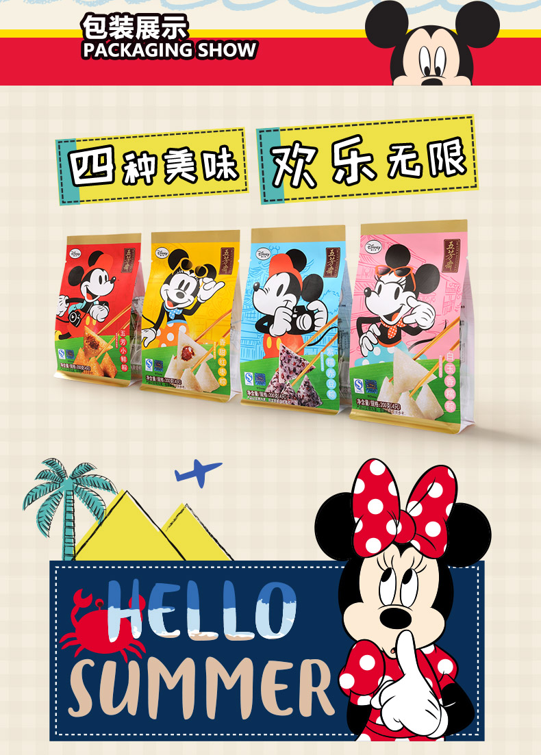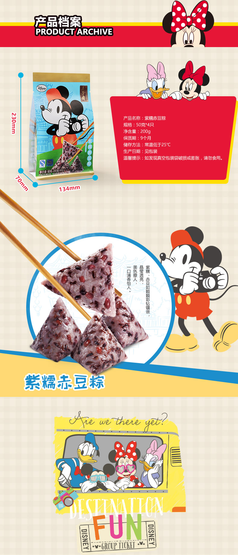 嘉兴五芳斋粽子迪士尼紫糯赤豆粽子真空50克*20只迷你粽子素粽子
