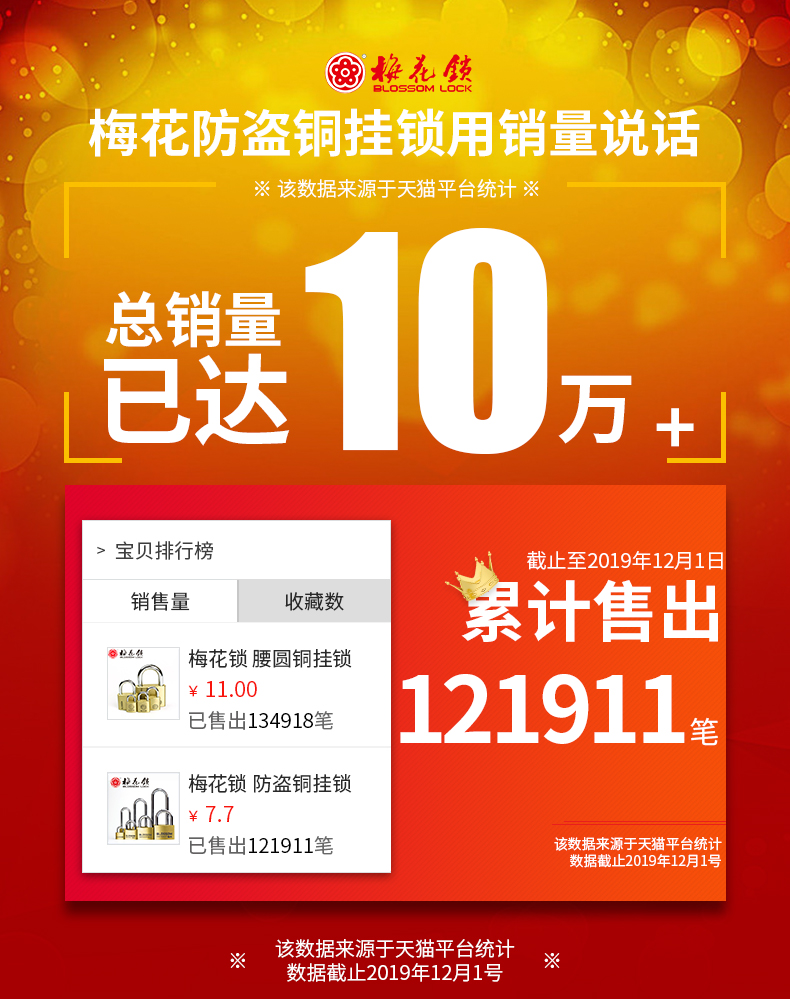 【梅花CCTV中国十大锁王,品质有保证的】梅花锁中国十大锁王!全铜锁体,圆润造型,精品打造,防水耐用,多尺寸可选,多场合可用,行李箱包锁健身房防盗必备。
