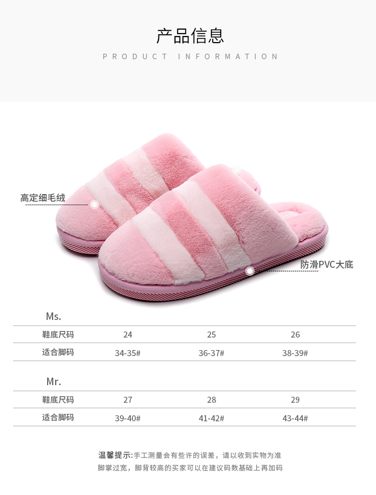 居家保暖舒适,情侣居家毛绒拖鞋,精选优质毛绒面料,轻便透气。立体纹理防滑软底,轻便舒适行走。还不快屯等着冬天穿!!