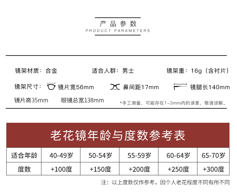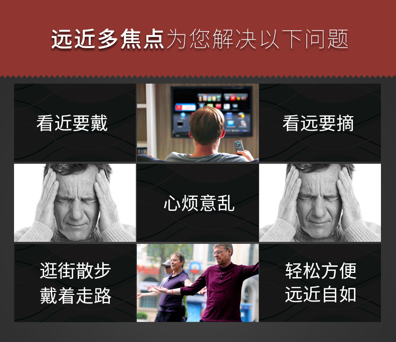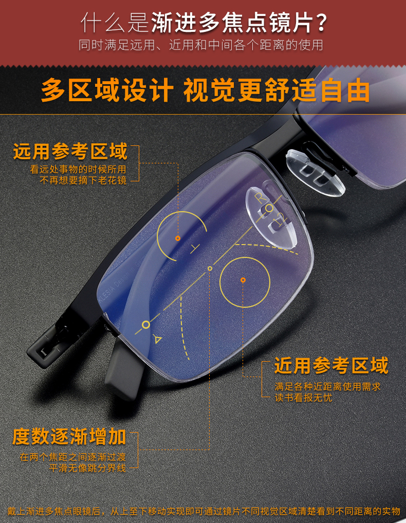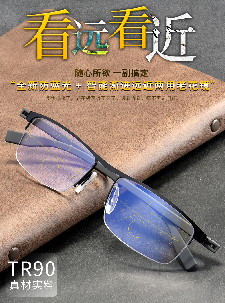 超轻便捷,无负重感,高弹镜腿,不易折断,德国进口镜片防刮防蓝光,超清智能渐进式老花镜,佩戴舒适不压迫,适合多种脸型。关爱父母,孝敬长辈!
