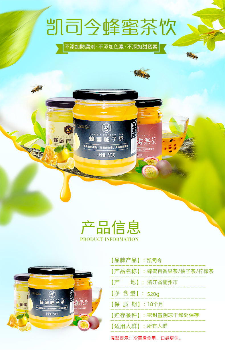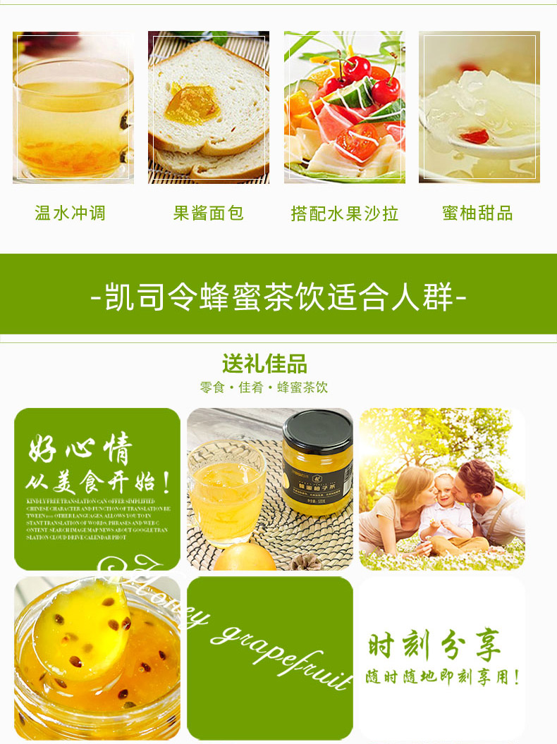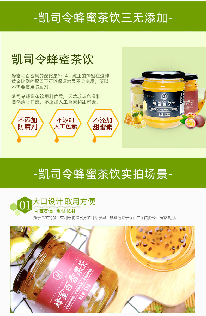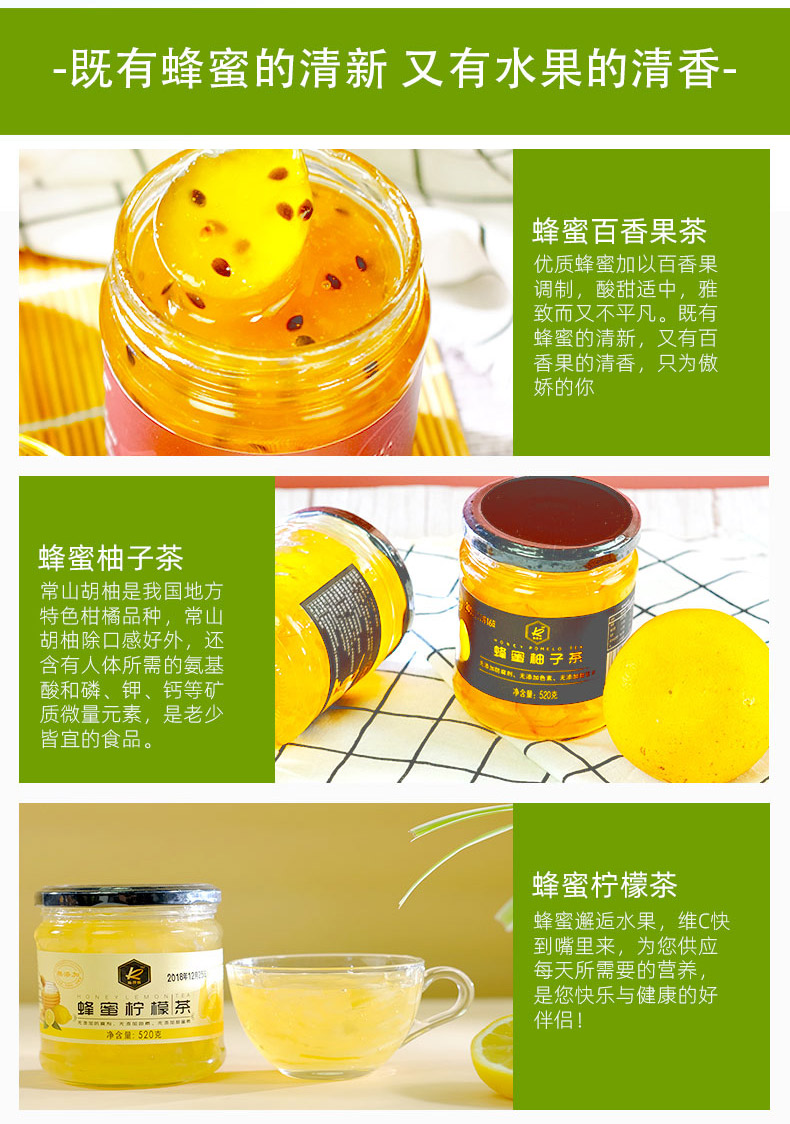 凯司令蜂蜜柚子茶柠檬百香果茶520g罐装水果茶酱冲饮泡水喝的饮品