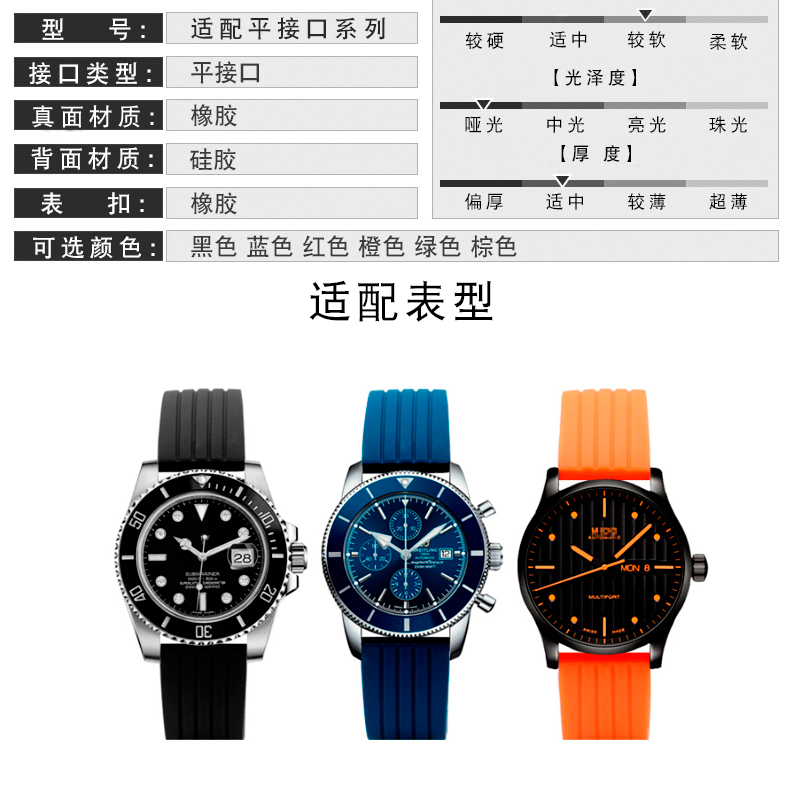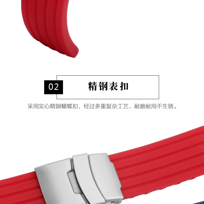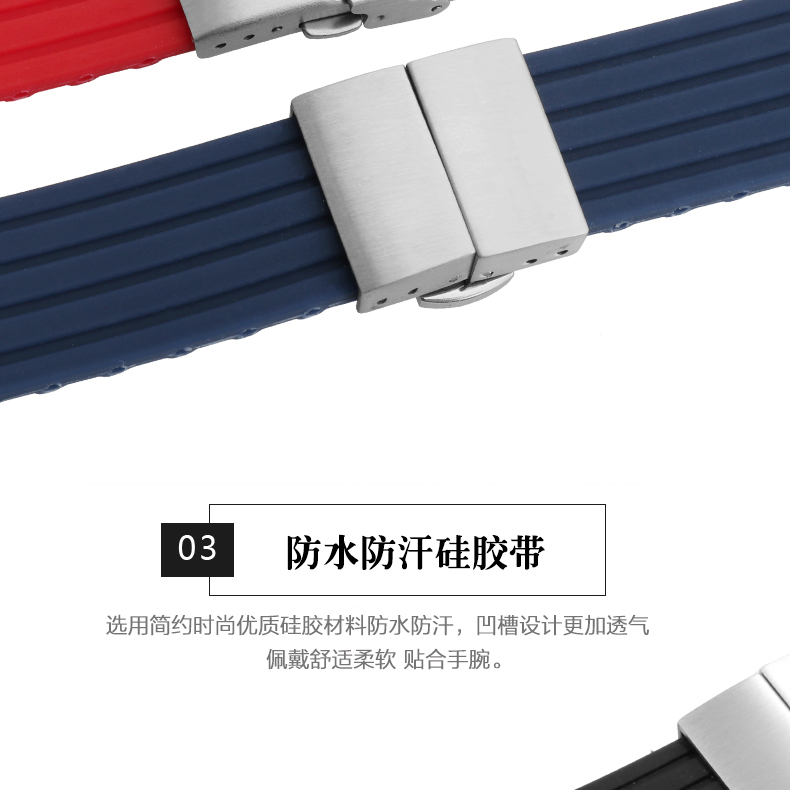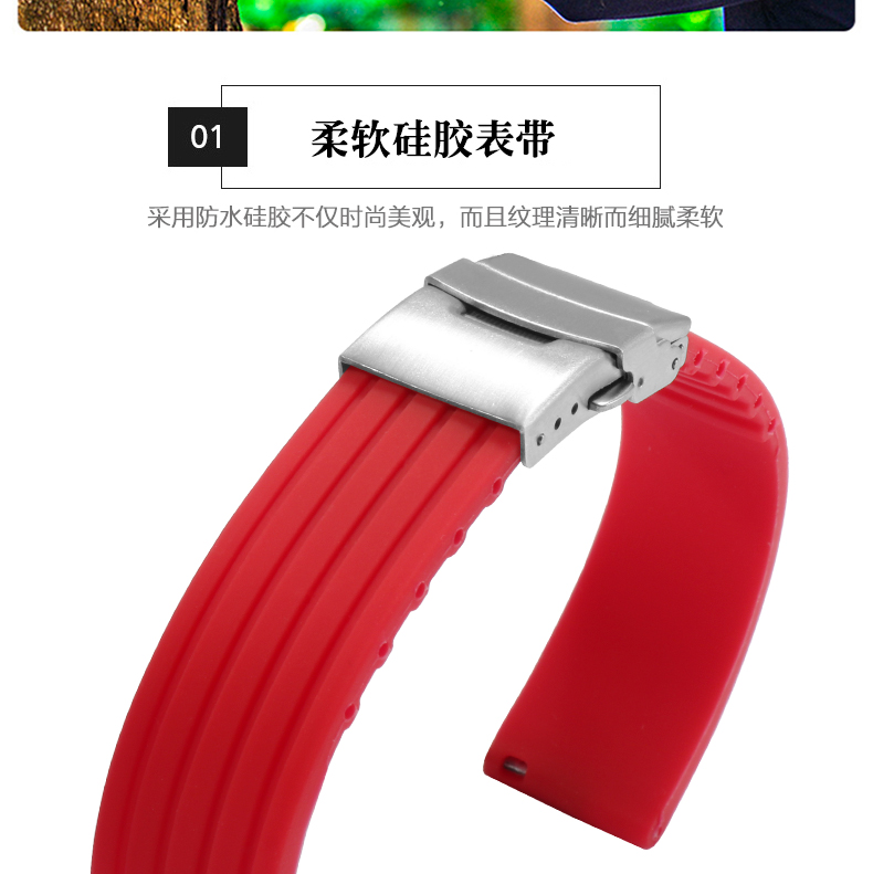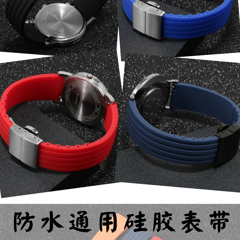 恩玺橡胶手表带 16 17 18 19 20 21 22 23 24MM平口通用硅胶表带