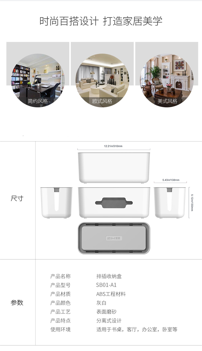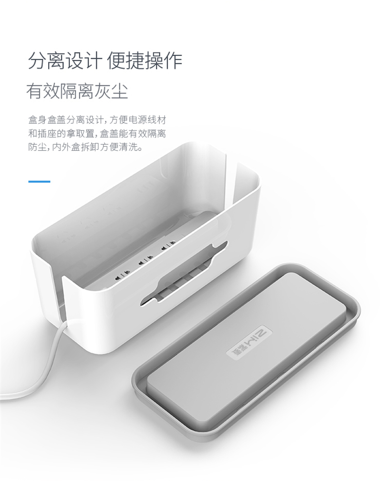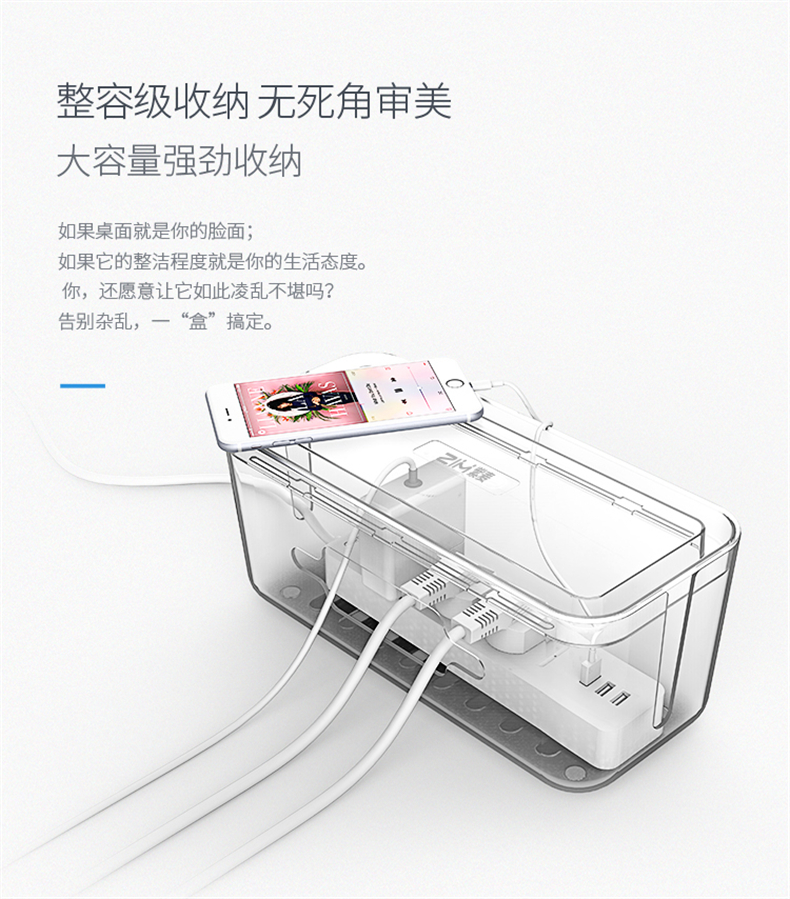 紫麦桌面排插收纳盒电线整理线条插座充电线电源线箱集线盒大容量