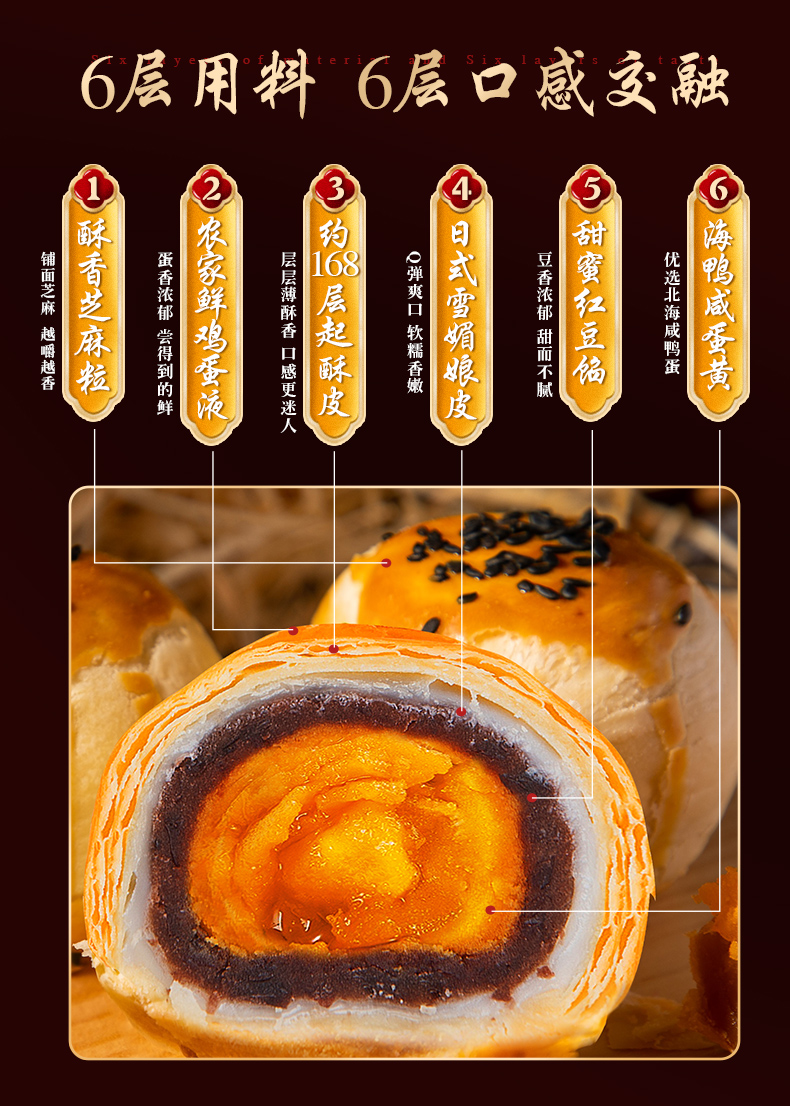 6枚精美礼盒装!皮包酥鲜,整颗蛋黄,4层夹心,吃一口层层惊喜,超值速抢,吃进去的每一口都弥漫着满足的幸福感~