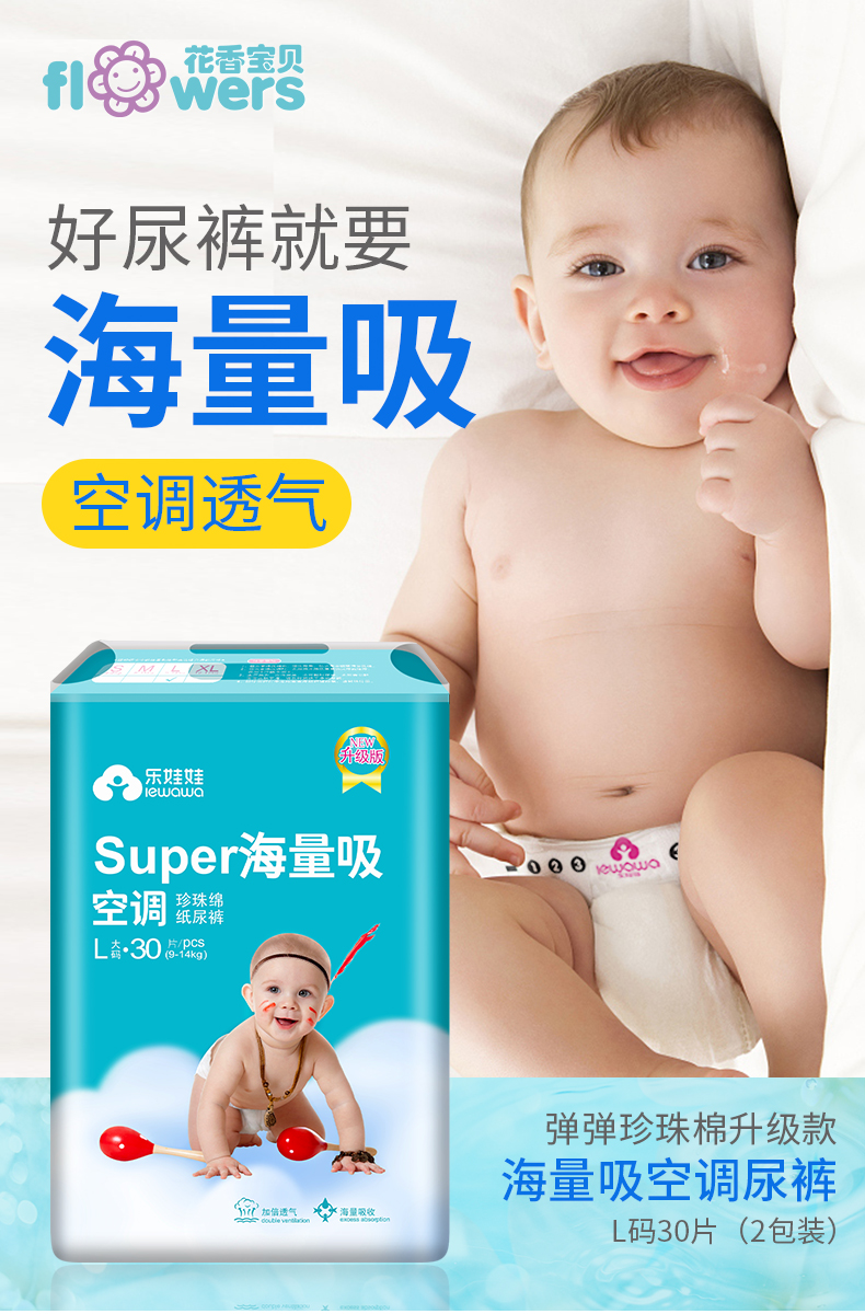 花香海量吸婴儿空调纸尿裤S/M/L/XL码超薄透气干爽宝宝冬季尿不湿