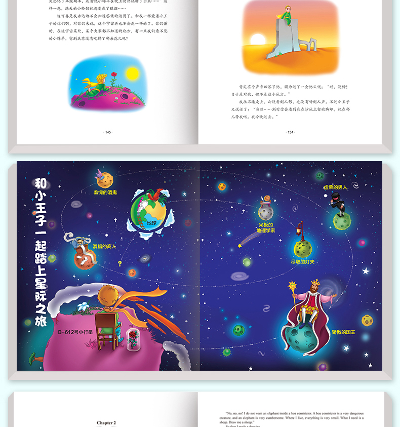 2册双语中英文对照小王子书正版包邮原版安东尼彩图绘本纯美珍藏世界名著文学畅销外国小说初中小学生课外阅读书籍五六七年级必读