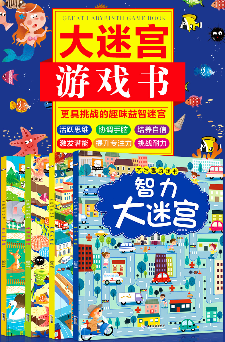 全4册 走大迷宫书 大本彩色图画捉迷藏 高难度趣味挑战冒险 幼儿专注力思维训练 益智游戏早教全脑智力大开发 儿童书籍3-4-5-6-7岁