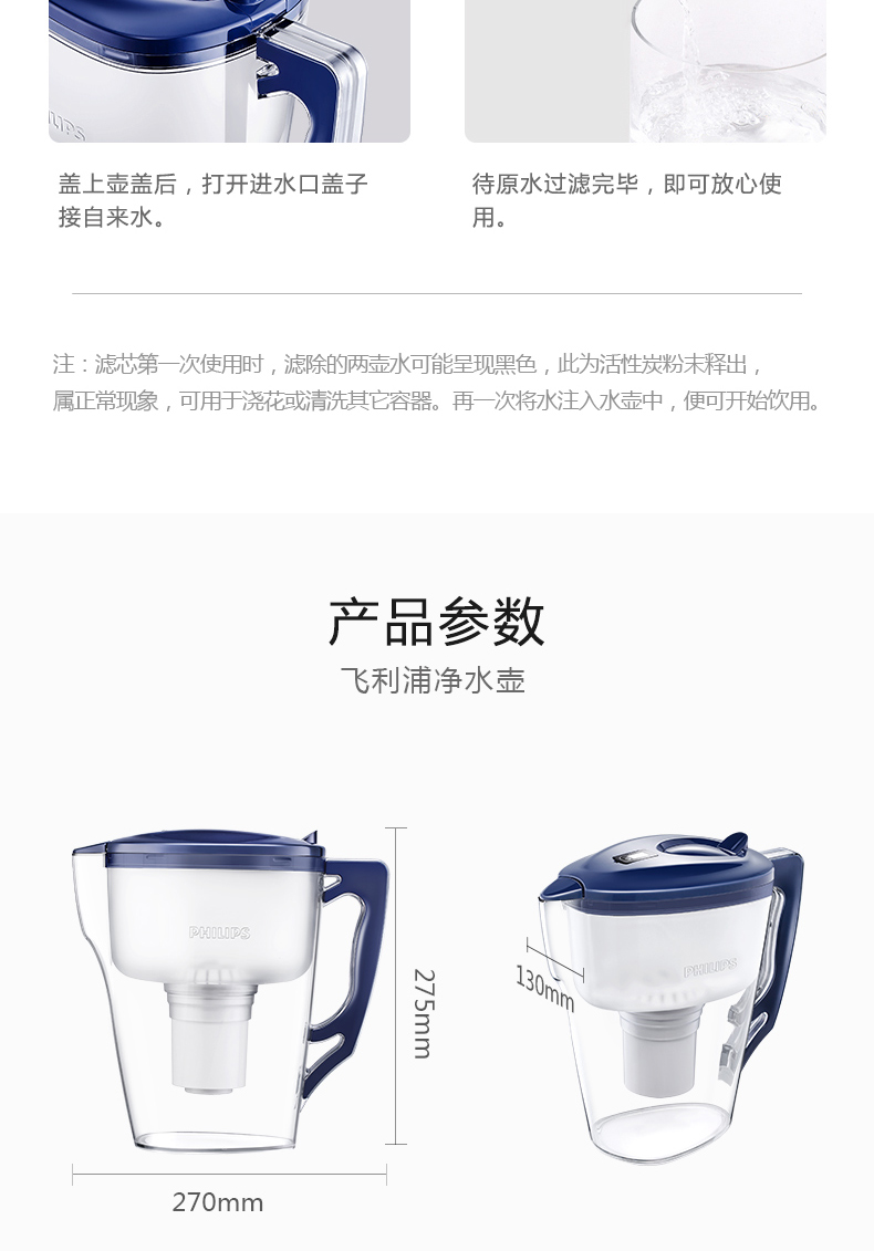 飞利浦净水壶家用厨房自来水过滤器过滤水壶净水杯WP2806 2805