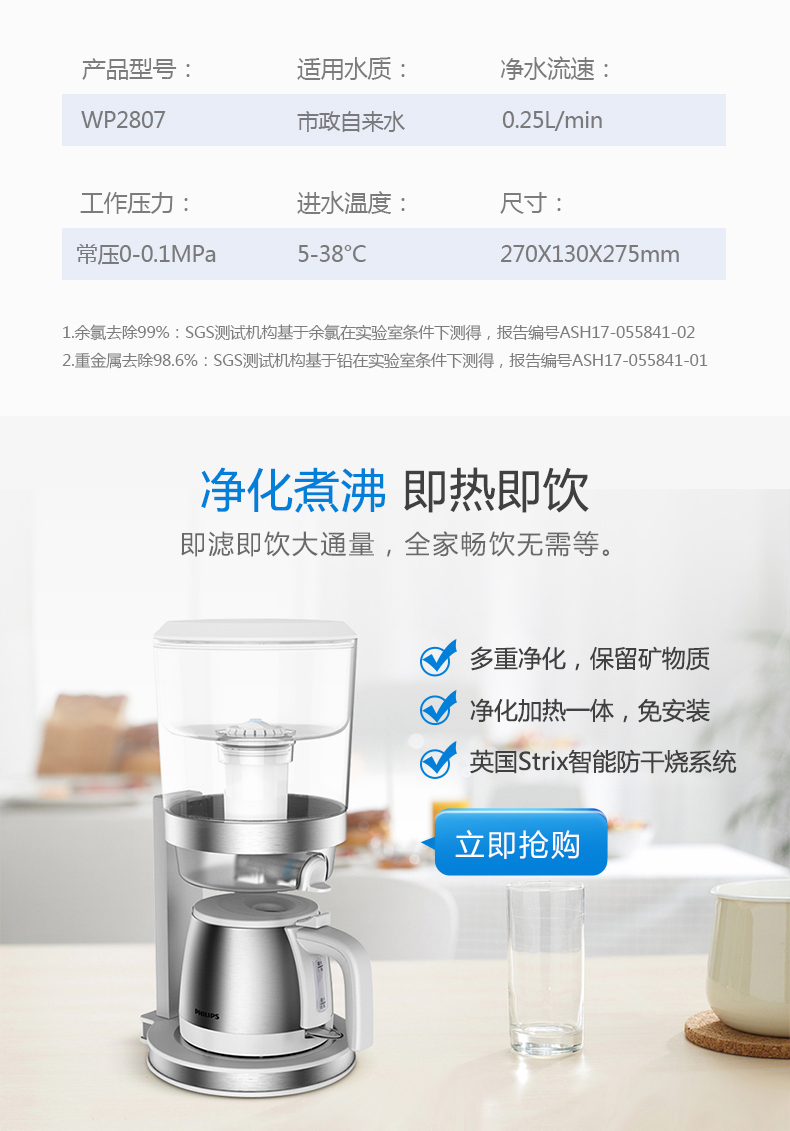 【飞利浦】来来来,科普一下!!奶瓶级材质,烧开的水能去除余氯,放射性物质等等,赶紧搞个过滤水壶啊,可以过滤95%的脏东西,为了家人的健康赶紧用起来【赠运费险】