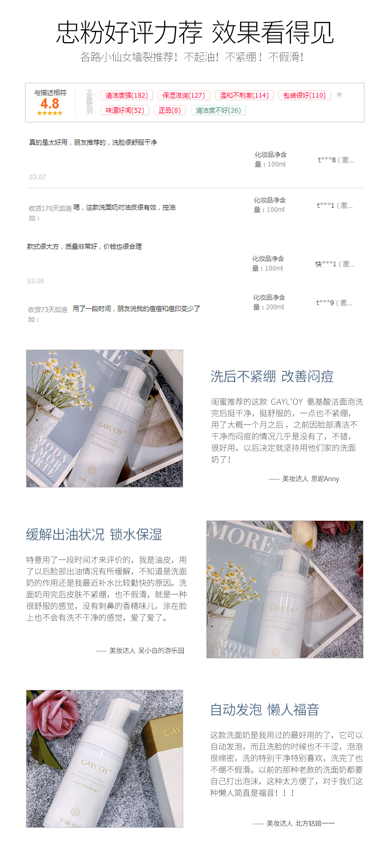 多肽氨基酸洗面奶男女适用深层清洁毛孔温和洁面乳慕斯卸妆泡沫