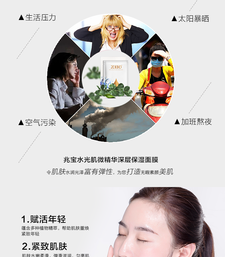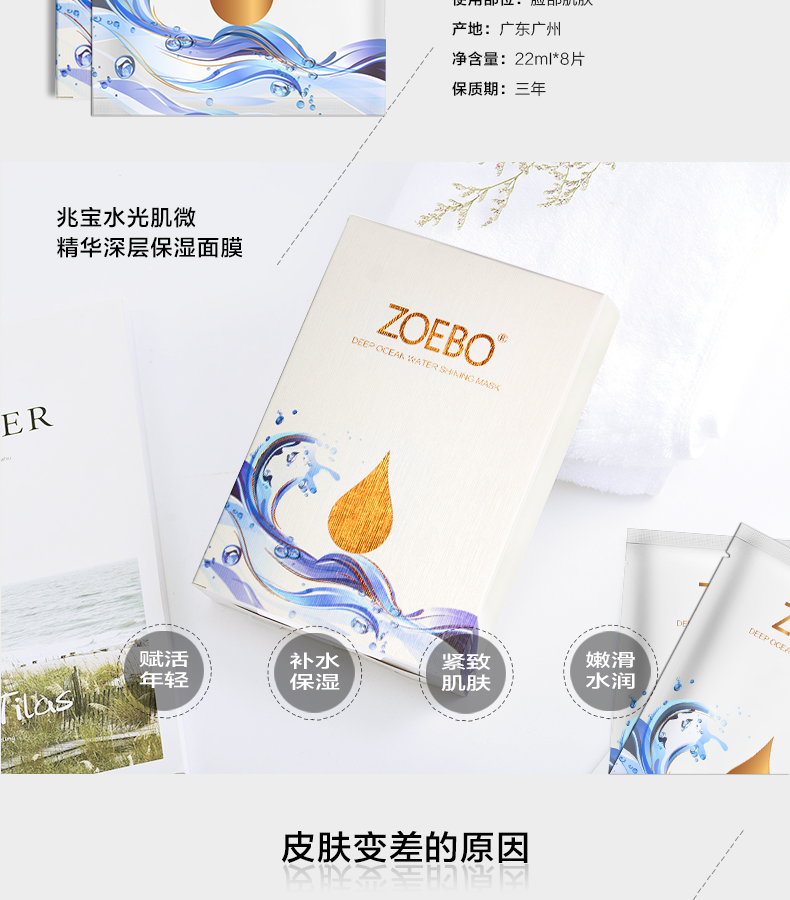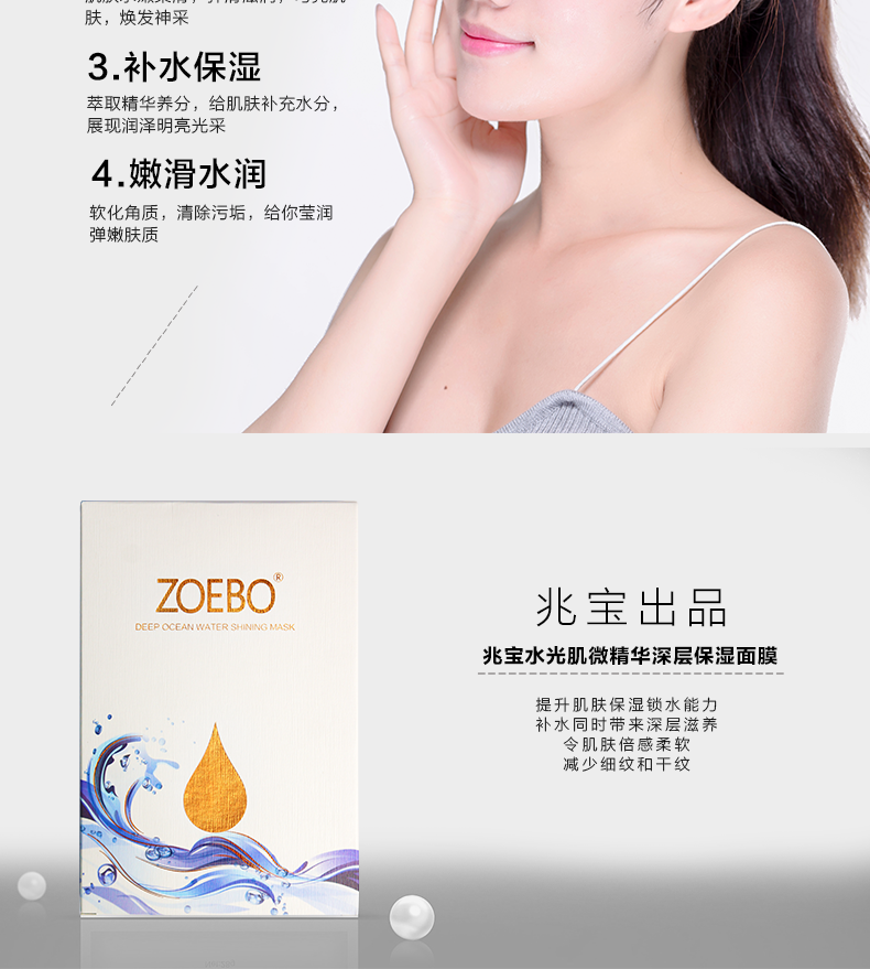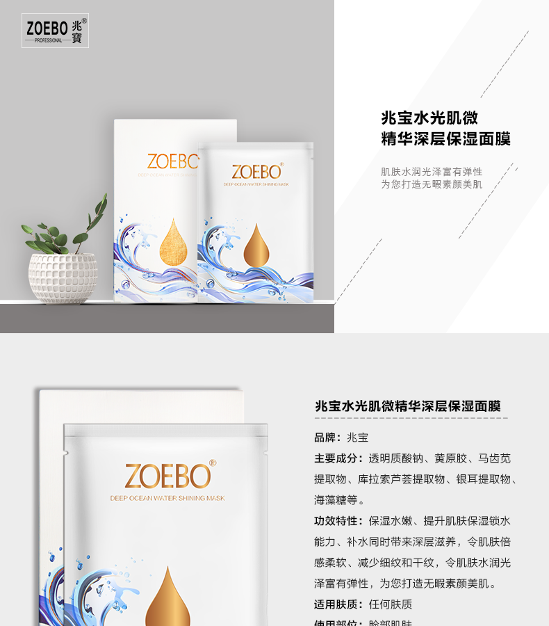 ZOEBO/兆宝水光肌微精华保湿面膜补水滋润女士面膜8片正品