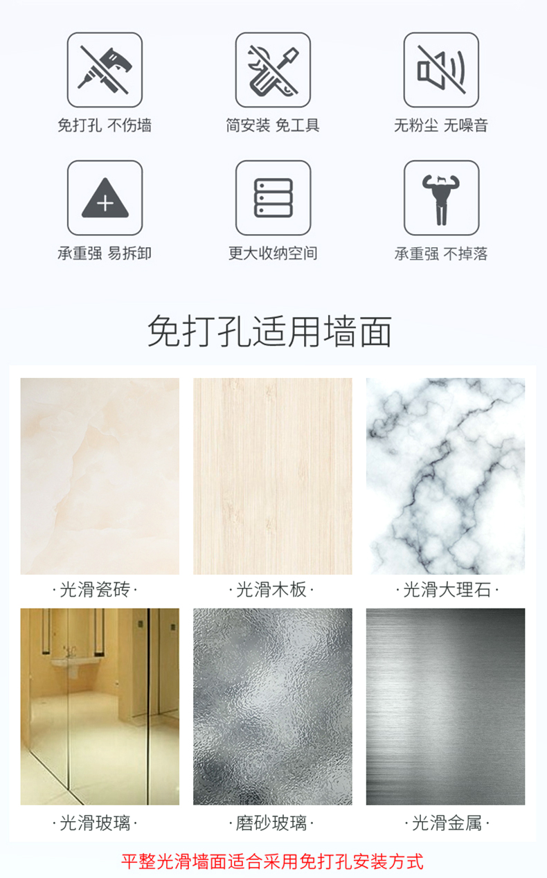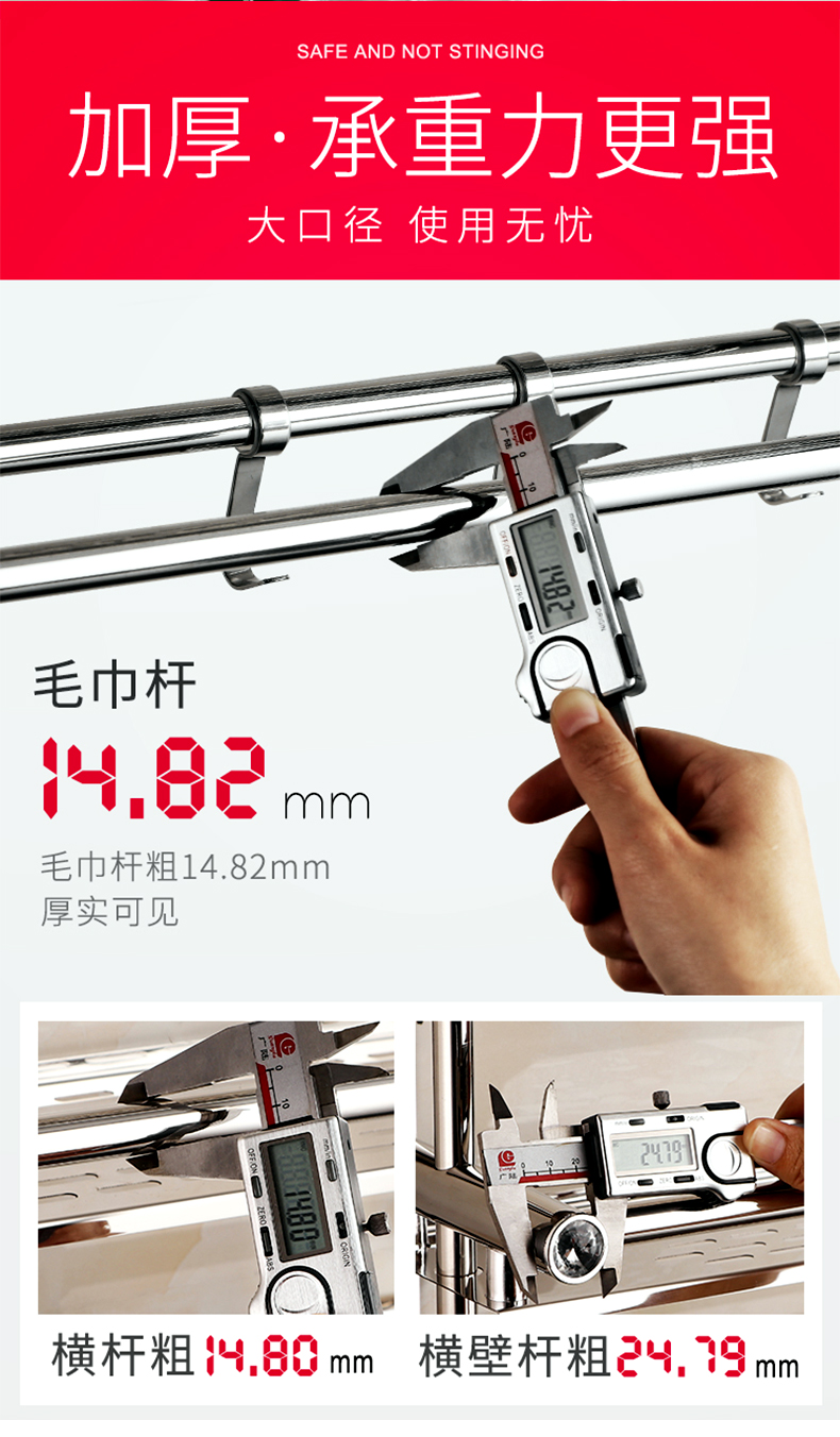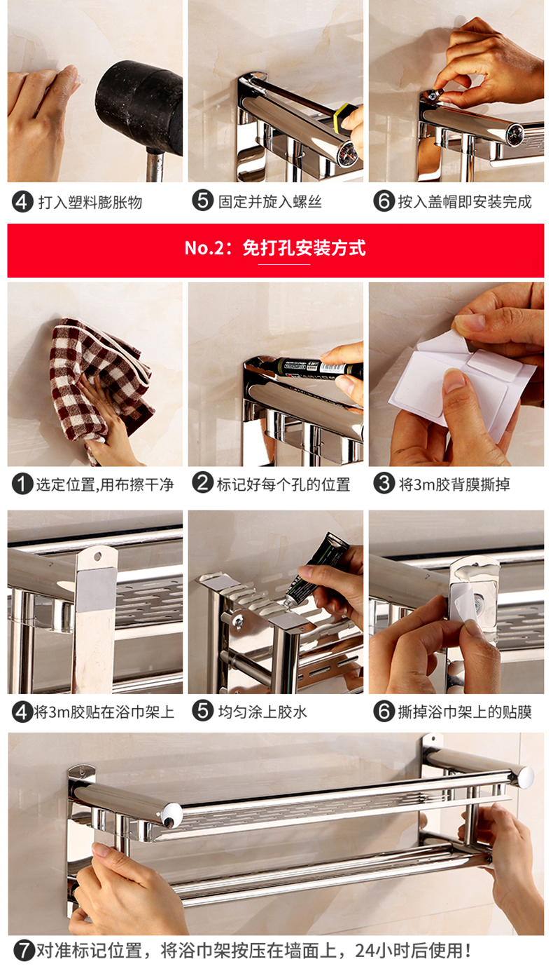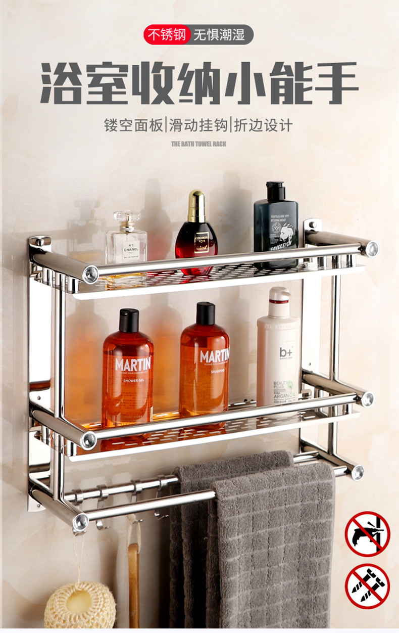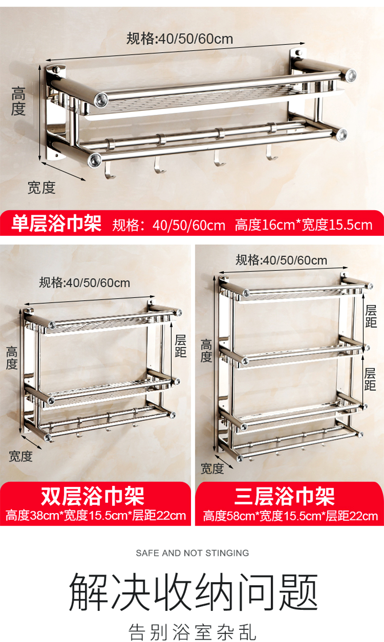 阶梯式结构,满足多种使用需求,免打孔,不伤墙面,掉落免费补发,采用太空铝材质,不生锈,加厚加宽,可折叠浴巾架,提高生活品味。
