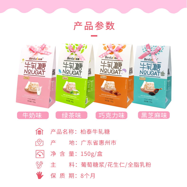 柏泰花生牛轧糖四种口味150g手工糖果礼盒办公休闲糖果零食伴手礼