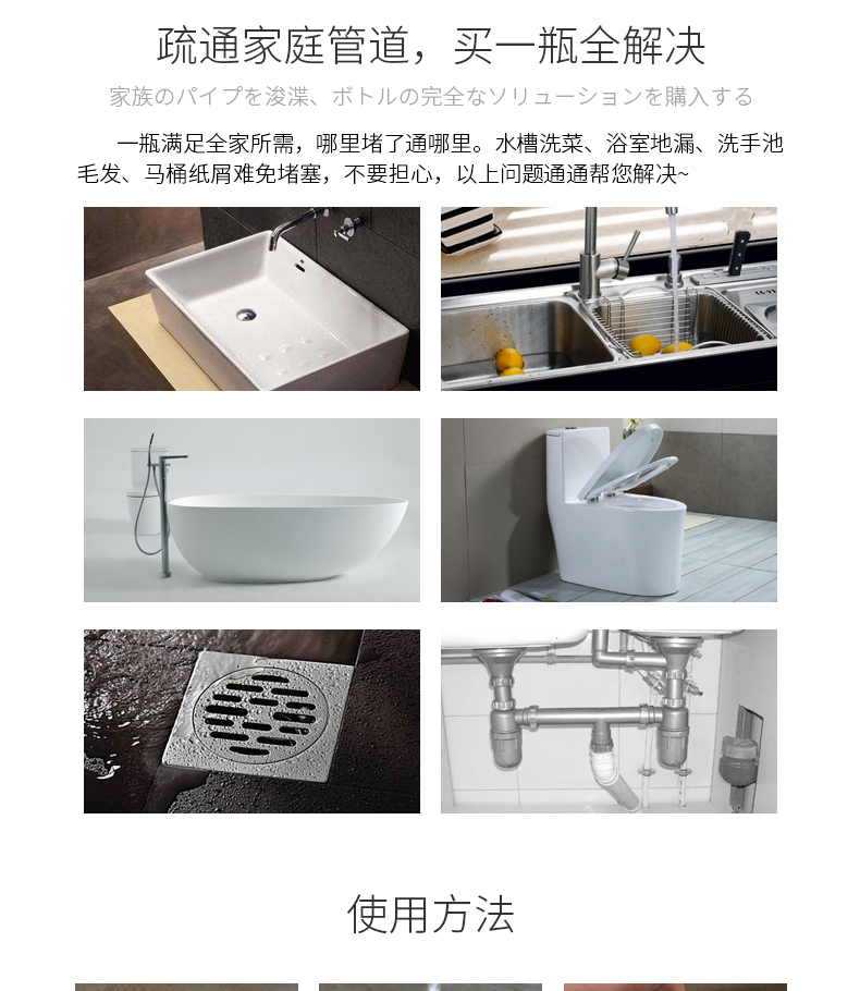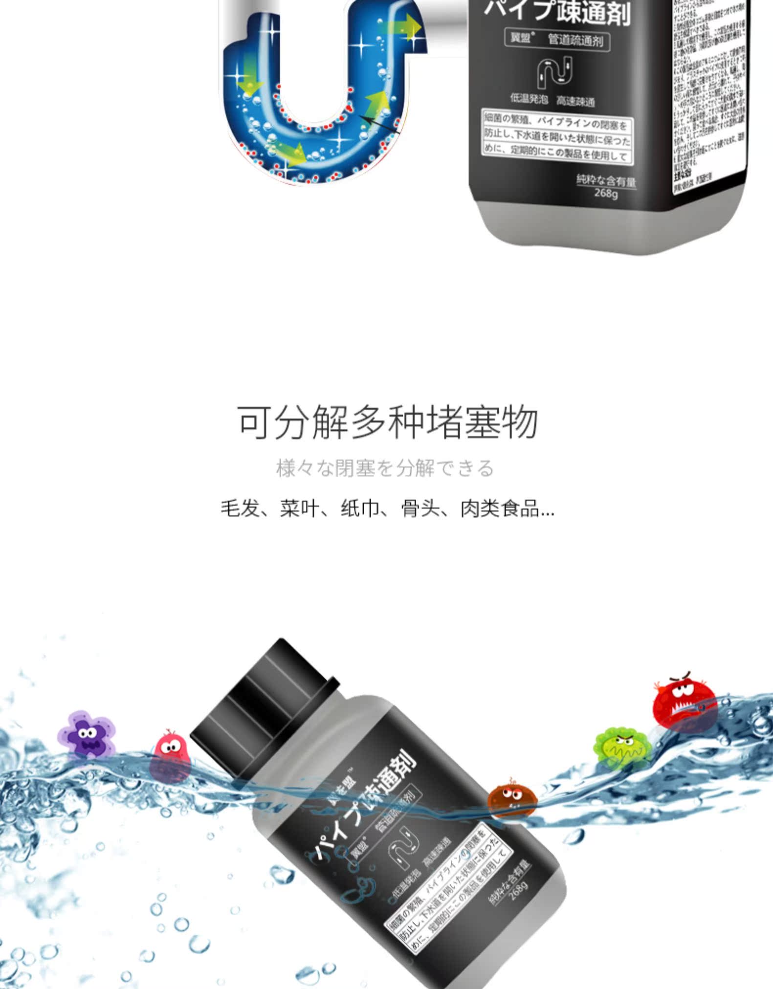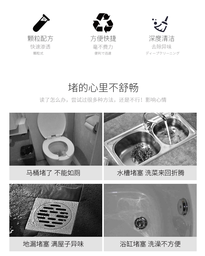 管道疏通剂通卫生间马桶下水管道地漏疏通除臭祛味剂污渍溶解剂