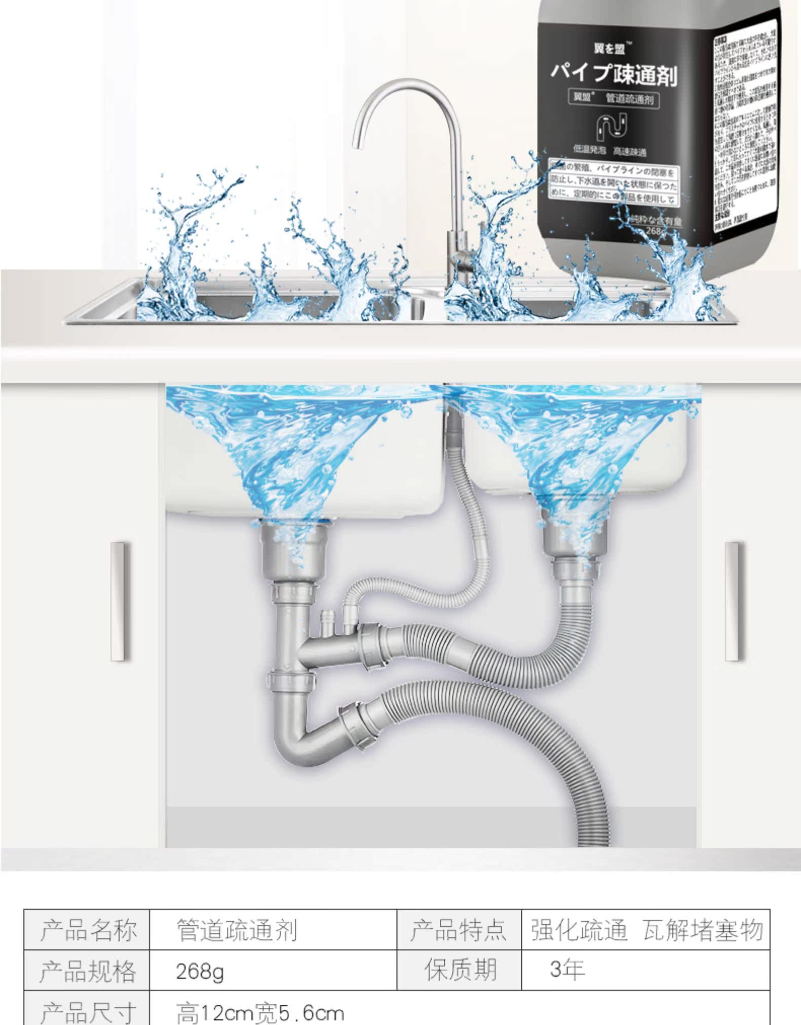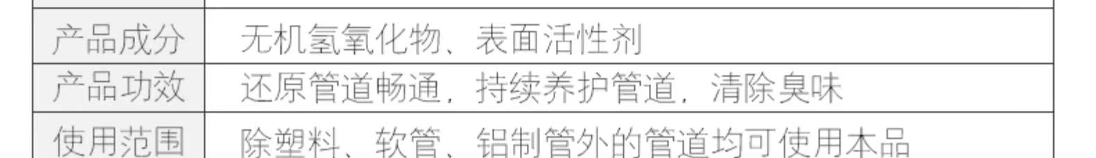 管道疏通剂,强力溶解附着在管道内壁上的油渍、食物残渣、毛发等粘稠污物,塑料软管也可使用,不伤管道使管道更加畅通~