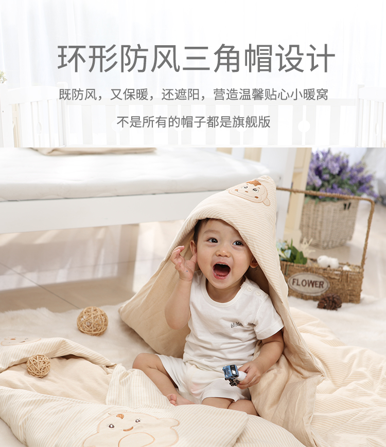 精选上等纯棉面料,A类安全级别,亲肤健康,柔软透气,可全身水洗,睡袋抱被两用,防风保暖,双向拉链设计,宝宝换尿布更方便,不着凉,细心呵护宝宝,宝妈必备神器!