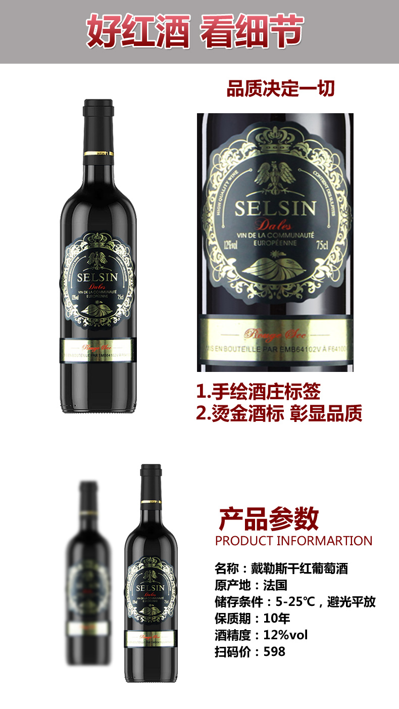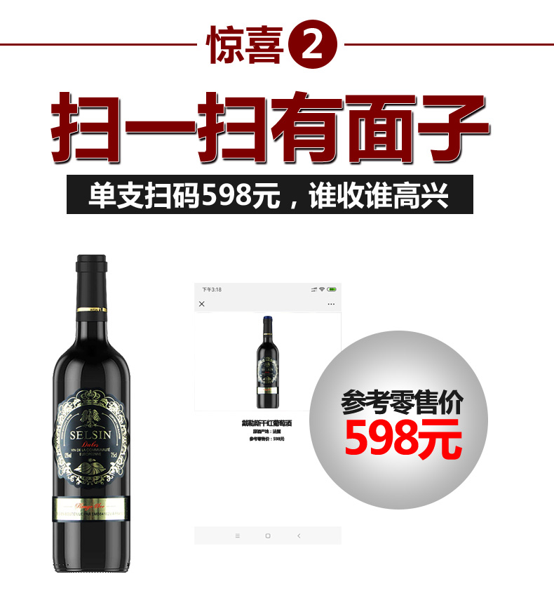 正品法国原酒进口红酒,口感酸涩均衡果香好,扫码价598元,适合送人,好红酒看细节!品牌直销质量保障!破损包赔!买就送酒具,【赠运费险】