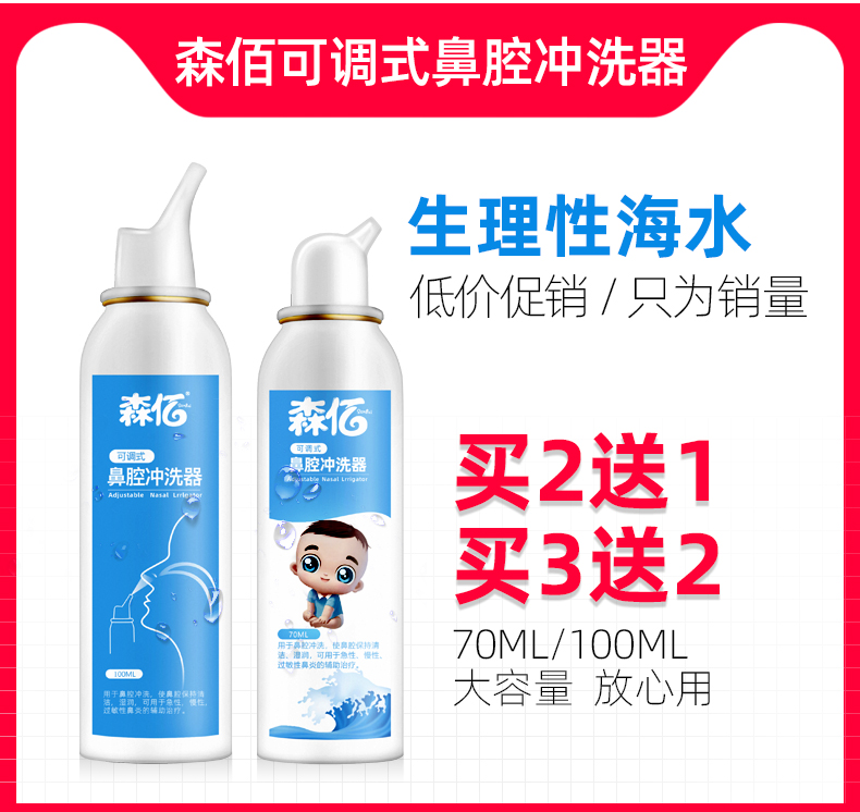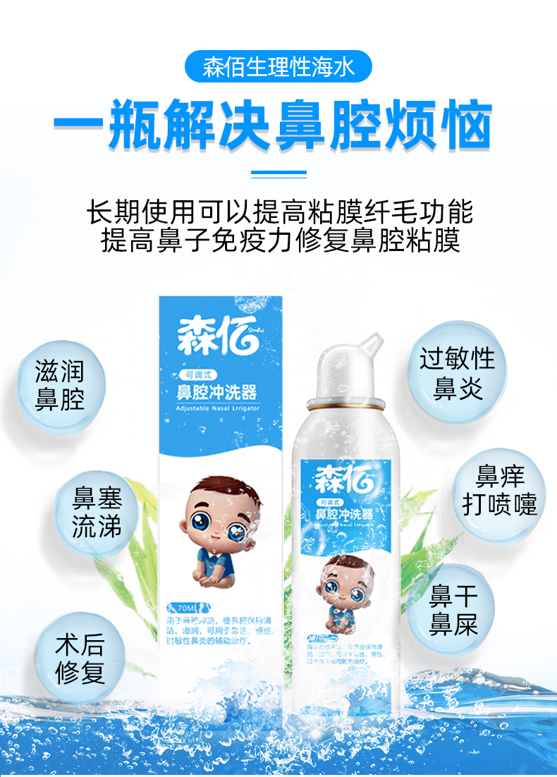 生理性海盐水鼻腔喷雾儿童鼻炎洗鼻子神器鼻喷婴儿洗鼻器生理盐氺